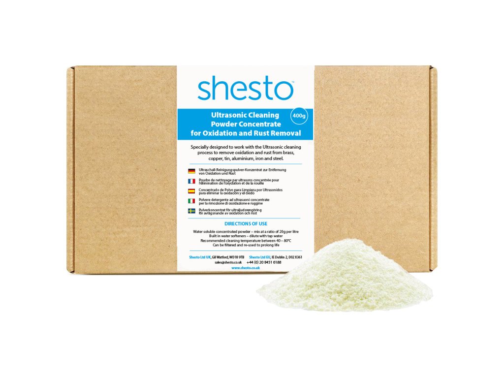 Speciálně navržený koncentrovaný prášek rozpustný ve vodě, pro ultrazvukové čištění k odstranění oxidace a rzi z mosazi, mědi, cínu, hliníku, železa a oceli. Vytvoření až 20 l roztoku z 400 g koncentrátu. Pro prodloužení životnosti lze roztok filtrovat a znovu použít. Práškový koncentrát se oproti klasickým roztokům snáze skladuje.