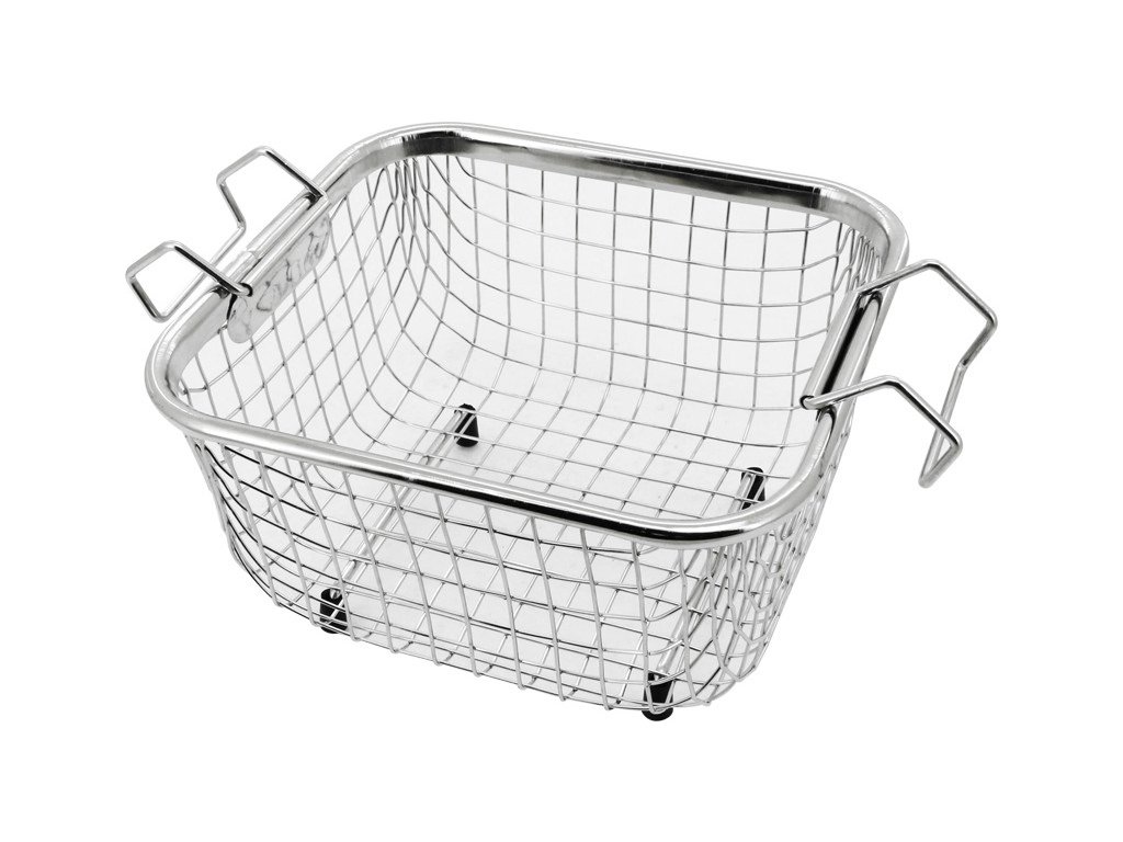 Shesto košík do ultrazvukové čističky 2l (SH-UT8021/EUK) z drátěného pletiva na jemné předměty. Má pohodlné rukojeti, které přesahují okraj vany, což umožňuje bezpečné a snadné přemístění čištěného předmětu během cyklu čištění ultrazvukem.