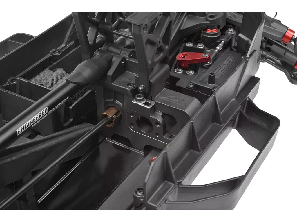 Jádrem modelu SHIROI je CNC frézované 3mm hliníkové plato podvozku, vyztužené vzpěrami a vysokými kompozitními bočními chrániči. Tato tuhá kostra je konstruována tak, aby s lehkostí zvládala jízdu ve vysoké rychlosti, drsný terén a náročné dopady. Neprůstřelné ocelové hnací ústrojí s CNC frézovanými ozubenými koly, třemi diferenciály naplněnými olejem a odolnými hnacími hřídeli CVD zajišťuje maximální účinnost a spolehlivost jak při napájení 4S, tak i 6S LiPo.