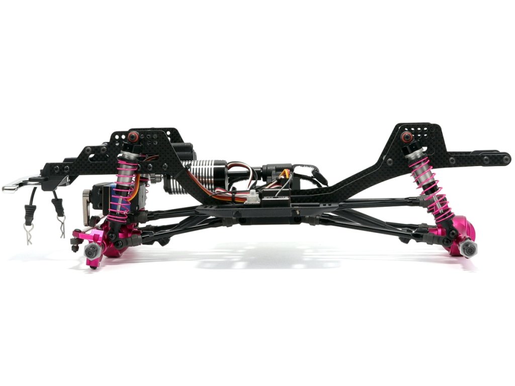 - Přímé nápravy z hliníku CNC 6061 se záklonem rejdového čepu pro lepší účinnost řízení.