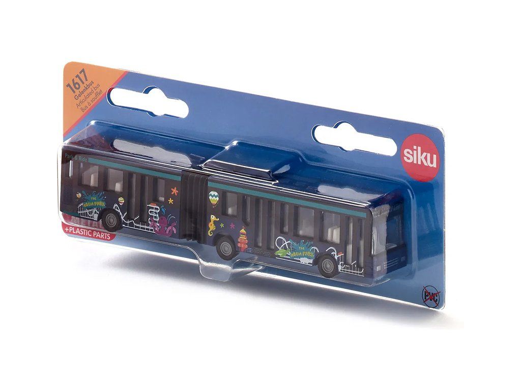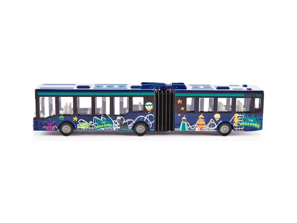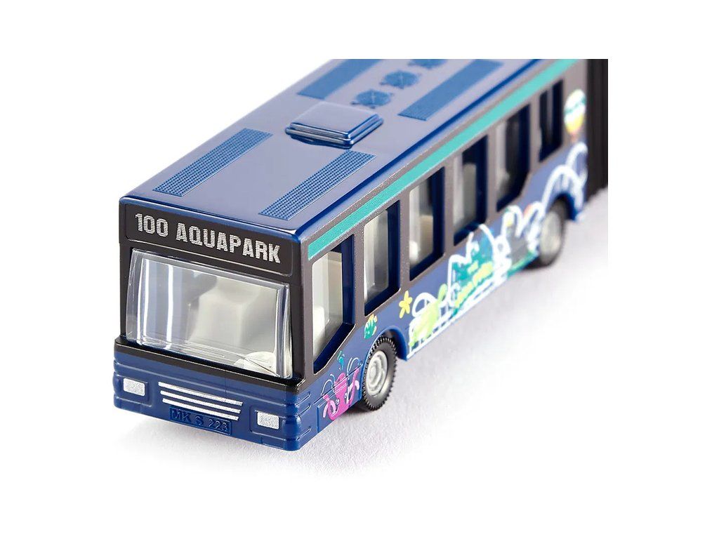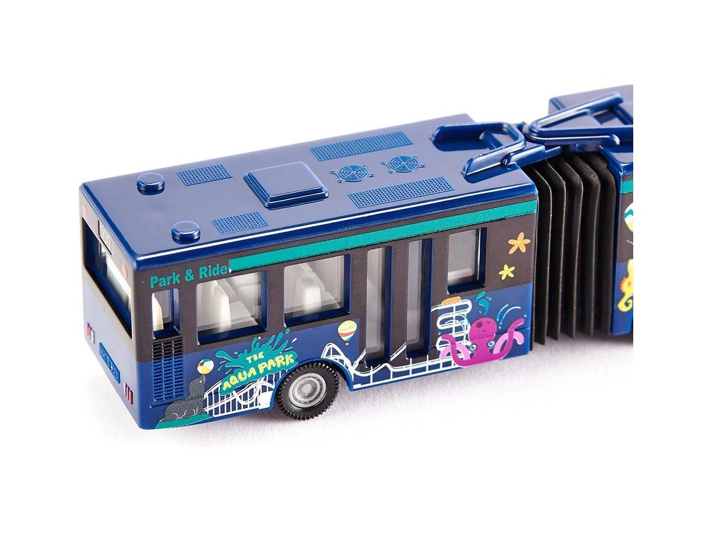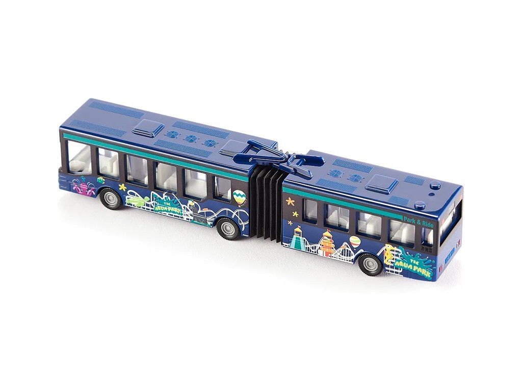 Kovový model kloubového autobusu od značky Siku, délka přibližně 16 cm. Model má pogumované pneumatiky, čirá okna, zpracovaný interiér a středový harmonikový kloub. Vhodné pro hraní i sběratelství. Kvalitní zpracování z kovu a plastu. Baleno v blistru.