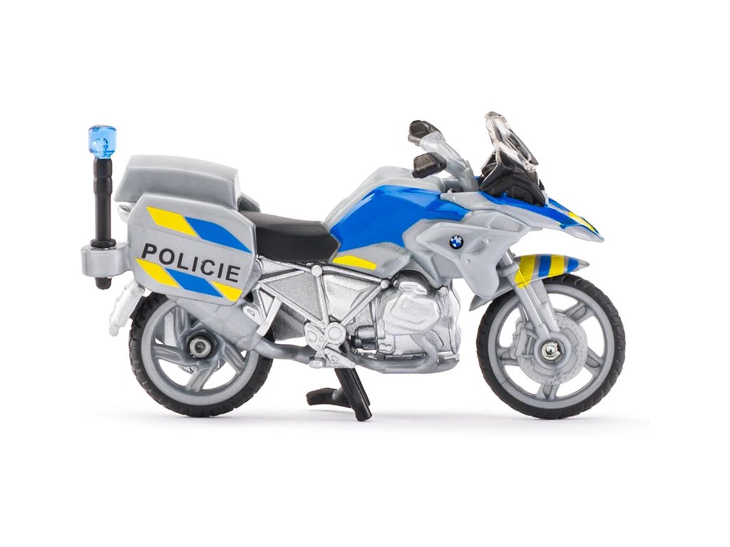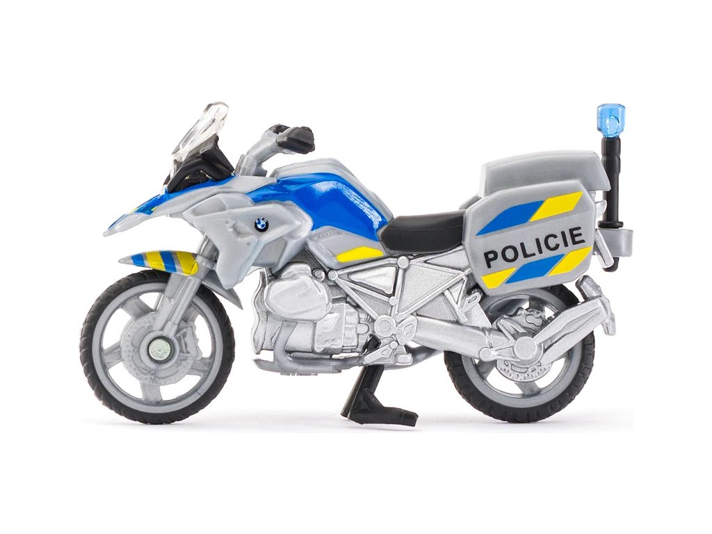 Kovový model policejní motorky BMW R1250 GS LCI s českými nápisy v měřítku 1:50. Model má otočná řídítka, pohyblivý stojan a gumové pneumatiky. Maketa sportovní motorky v detailním designu policie. Vhodné pro hraní i sběratelství. Kvalitní zpracování z kovu a plastu. Baleno v blistru.