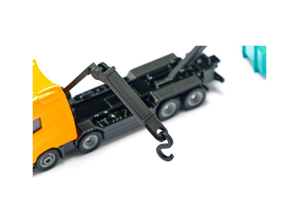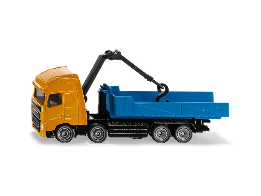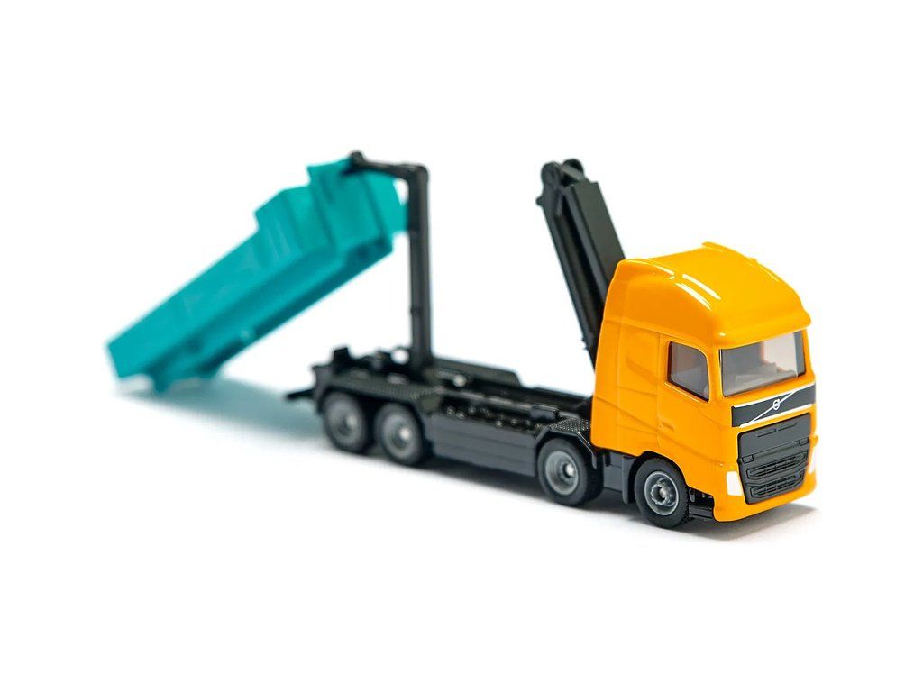 Kovový model nákladního vozu Volvo s hákovým kontejnerem a hydraulickou rukou, délka přibližně 13 cm, měřítko 1:87. Hákový kontejner lze sklopit a složit na zem. Rameno jeřábu má dva klouby, je otočné a vybaveno hákem pro zvedání. Čtyřnápravovým model ma čirá okna. Vhodné pro hraní i sběratelství. Kvalitní zpracování z kovu a plastu. Baleno v blistru.