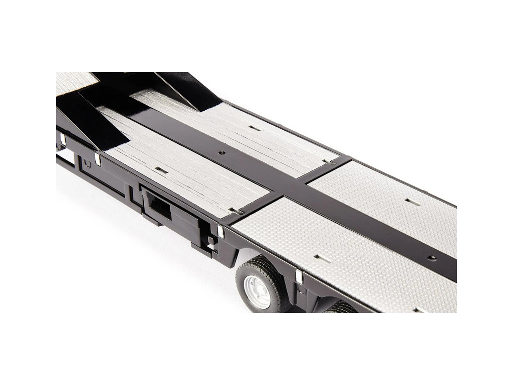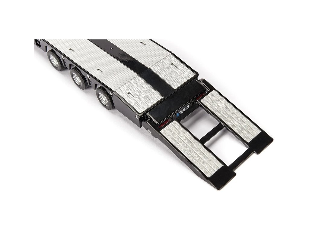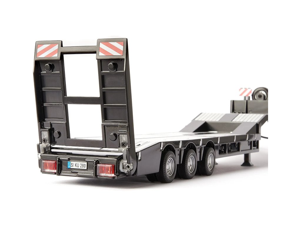 Třínápravový podvalník je volitelným příslušenstvím k modelů Siku Control. Podvalník má elektricky sklopné nájezdy a LED zadní světla včetně směrovek - funkce jsou ovládané dálkově přes model. Přívěs dále obsahuje manuálně vysouvací nohy. Kvalitní zpracování z kovu a plastu.