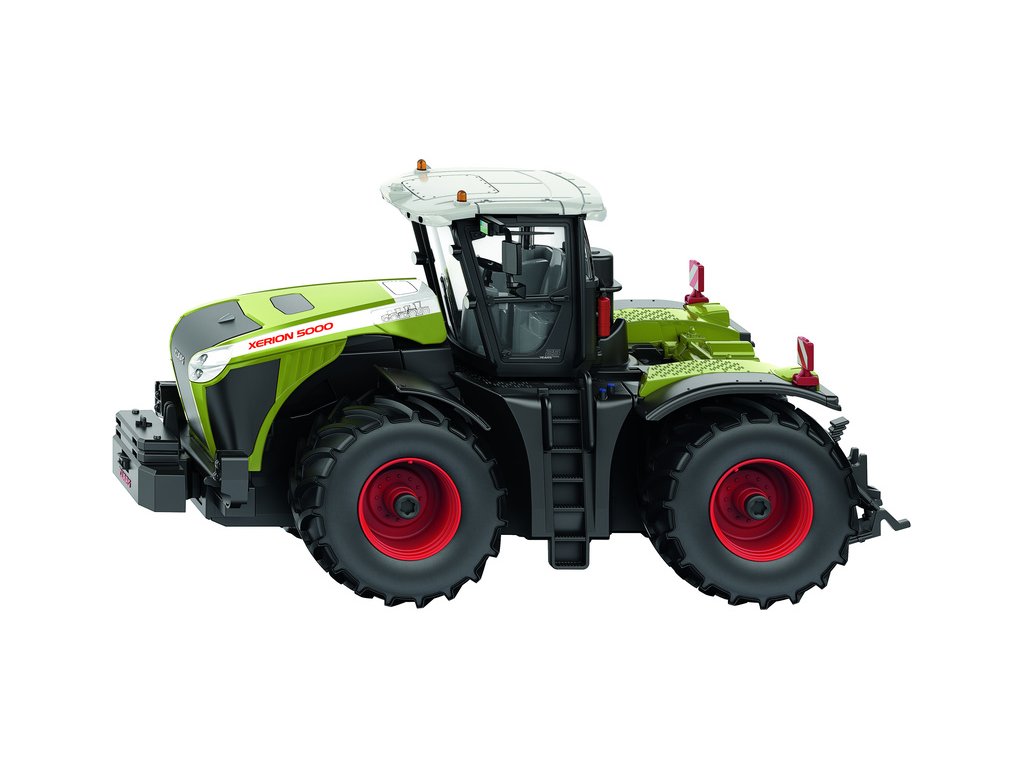 Kovový model traktoru Claas Xerion 5000 TRAC na dálkové ovládání přes telefon v měřítku 1:32. Šest dálkově řízených funkcí - jízda, zatáčení, krabí jízda, zrcadlové zatáčení náprav, otočná kabina, aretace tažného zařízení. 22 LED, včetně blinkrů. Vhodné pro hraní i sběratelství. Kvalitní zpracování.