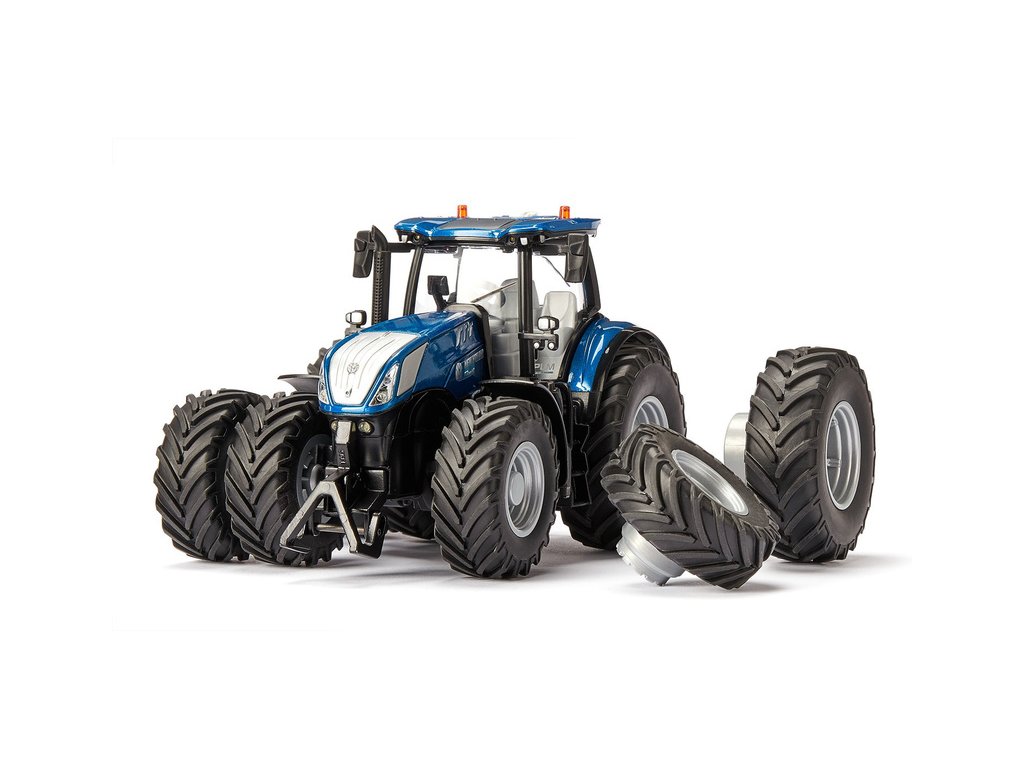 Model traktoru New Holland T7.315 vás naprosto nadchne a to nejen robustním autentickým zpracováním z kovu s plastovými částmi, ale také dálkově řízenými funkcemi, které lze ovládat pomocí aplikace Siku Control v telefonu. Kromě tří mechanických funkcí lze také dálkově zapínat světla, aktivovat blinkry a spustit majáčky. Model dále obsahuje přední držák, sklopná zrcátka a dvojitá kola s pneumatikami (vnější kola jsou připevněny pomocí jedinečného magnetického ráfku a lze je demontovat). Model může být rovněž vybaven dalším příslušenství z řady Siku 1:32. Provoz modelu je na tužkové baterie.