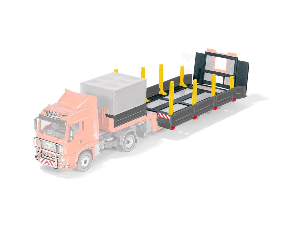 SIKU platforma určena pro podvalník Siku Control 1:32. Platforma rozšiřuje podvalník a umožňuje přepravu pásového rypadla SIKUCONTROL Liebherr R980 SME na staveniště. K přepravě dlouhých materiálů, jako je dřevo, trubky a tyče, lze připevnit klanice. Sada obsahuje osm klanic ve třech délkách.