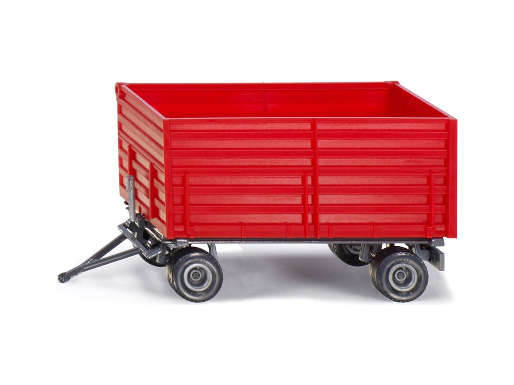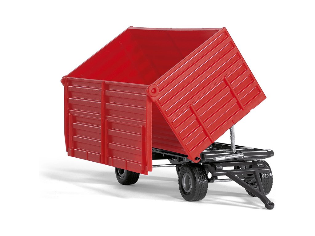 Kovový model dvounápravové vlečky v měřítku 1:32. Vlečka má kovový podvozek a plastovou korbou pro přepravu sklizně. Přední náprava je otočná. Korbu lze vyklonit do strany pomocí páky a náklad vysypat pravou výklopnou stranou. Vhodné pro hraní i sběratelství. Kvalitní zpracování z kovu a plastu. Lze připojit k traktorům Siku 1:32 s tažným zařízením.