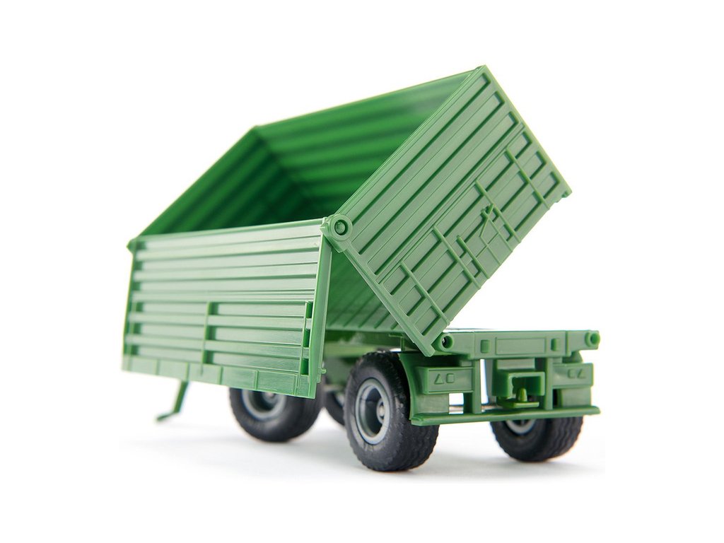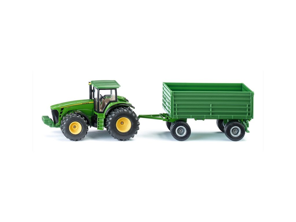 Kovový model traktoru John Deere 8000 s vlečkou v měřítku 1:50. Model je vybaven odnímatelnou kabinou, přívěs je odpojitelný a korba je výklopná směrem do boku. Otevírací stěna korby. Model má gumové pneumatiky pro tichou jízdu. Vhodné pro hraní i sběratelství. Kvalitní zpracování z kovu a plastu. Vlečka obsahuje rovněž tažné zařízení pro možnost připojení dalšího přívěsu.