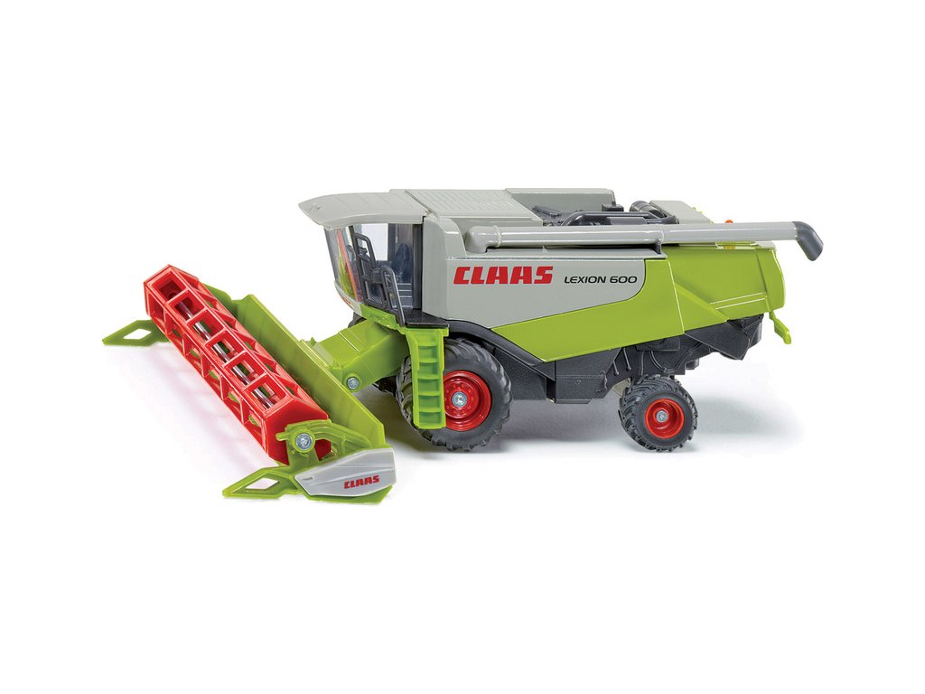 Kovový model gigantického kombajnu Claas Lexion 600 v měřítku 1:50. Přední žací lišta je výškově nastavitelná a odpojitelná. Rameno vyprazdňovacího šneku je otočné. Pogumované pneumatiky. Vhodné pro hraní i sběratelství. Kvalitní zpracování z kovu a plastu.