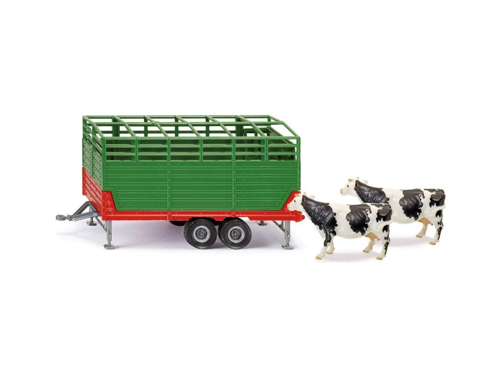 Kovový model přívěsu na přepravu dobytka v měřítku 1:32. Přívěs má otevírací zadní dveře a výklopné stojky. Obsahem balení jsou figurky krav. Určeno pro zapojení k modelů Siku Farmer 1:32 s tažným zařízením. Vhodné pro hraní i sběratelství. Kvalitní zpracování z kovu a plastu.