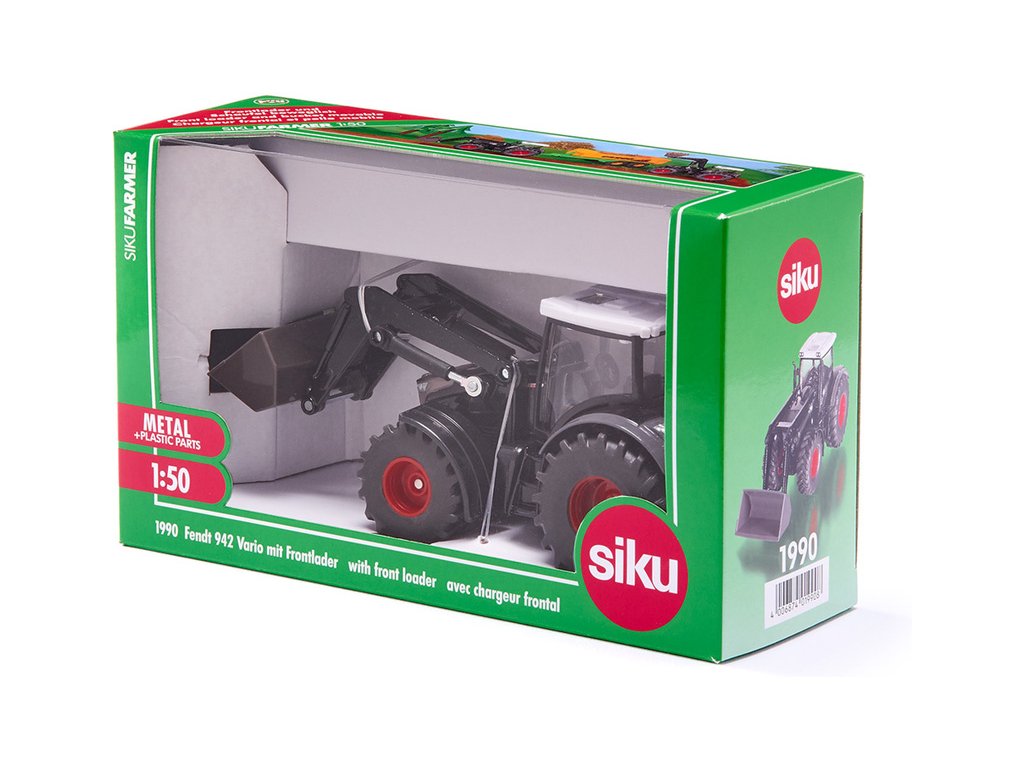Kovový model traktoru Fendt 942 s předním nakladačem v měřítku 1:50. Nakladač má zdvižné rameno s naklápěcí lžící. Kabinu lze oddělat od modelu. Vhodné pro hraní i sběratelství. Kvalitní zpracování z kovu a plastu. Díky předními držáku lze použít další příslušenství Siku 1:50.