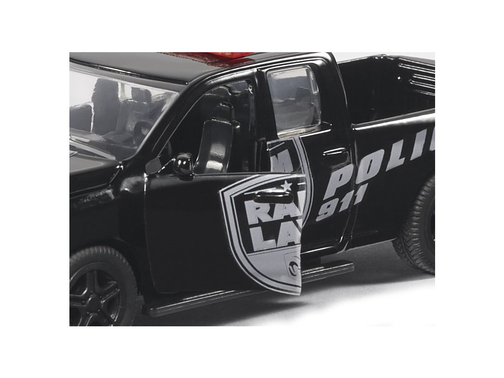 Kovový model auta US policie Douge RAM 1500 v měřítku 1:50. Otevírací boční dveře, kapota a čelo korby. Výměnná kola. Maják a poutavý potisk Police. Vhodné pro hraní i sběratelství. Kvalitní zpracování z kovu a plastu.