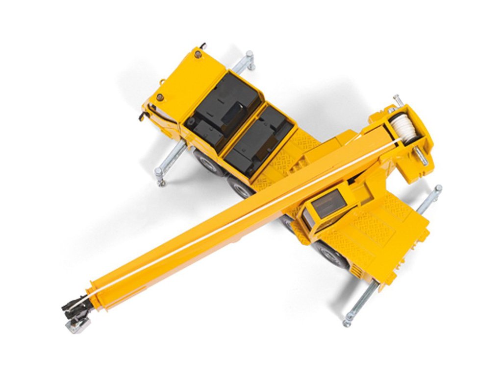Kovový model autojeřábu v měřítku 1:50 od značky Siku. Čtyřnápravový model s pogumovanými koly má otočnou kabinu, zvedací teleskopické rameno s maketou hydraulického pístu, manuální naviják pro hák a výsuvné boční podpěry. Vhodné pro hraní i sběratelství. Kvalitní zpracování z kovu a plastu.