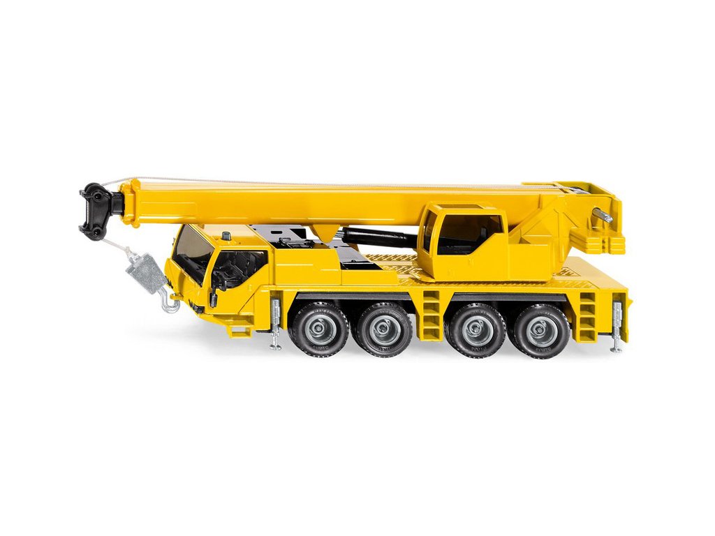 Kovový model autojeřábu v měřítku 1:50 od značky Siku. Čtyřnápravový model s pogumovanými koly má otočnou kabinu, zvedací teleskopické rameno s maketou pístu, naviják pro hák a výsuvné podpěry. Vhodné pro hraní i sběratelství. Kvalitní zpracování z kovu a plastu.