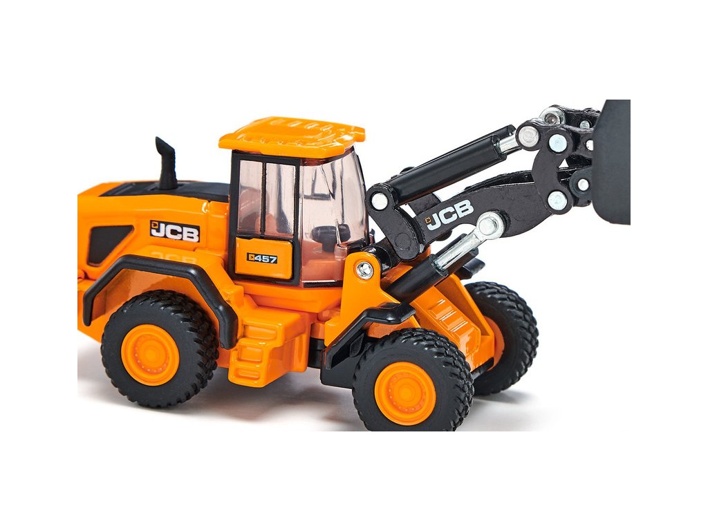 Kovový model nakladače JCB 457 WLS v měřítku 1:87 od značky Siku. Model obsahuje kloubové zatáčení, přední pohyblivé rameno s výklopnou lžící a maketami pístů, pogumovaná kola. Vhodné pro hraní i sběratelství. Kvalitní zpracování z kovu a plastu.