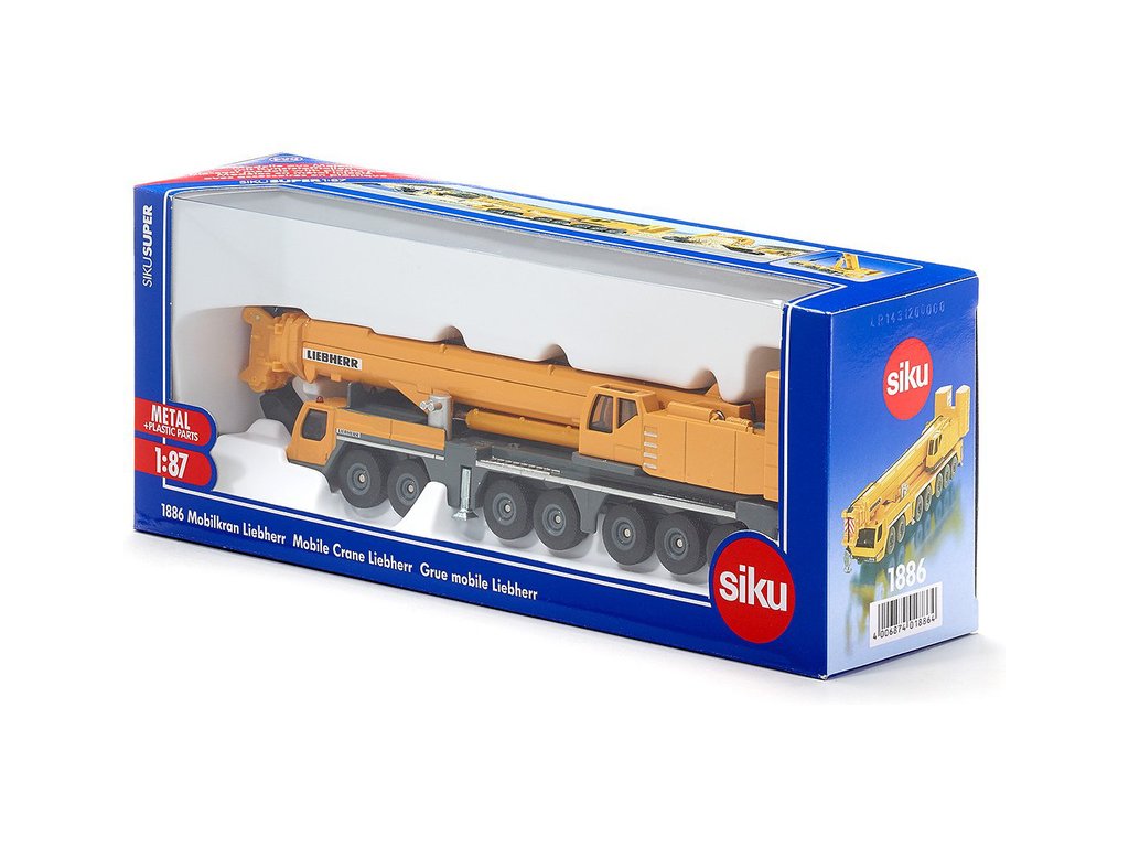 Kovový model autojeřábu Liebherr v měřítku 1:87 od značky Siku. Model obsahuje výsuvné rameno s pohyblivou maketou pístu, otočnou (360°) nádstavbu s kabinou, dvojitý hák s navíjením přes kolečko a výsuvné podpěry. Vhodné pro hraní i sběratelství. Kvalitní zpracování z kovu a plastu.