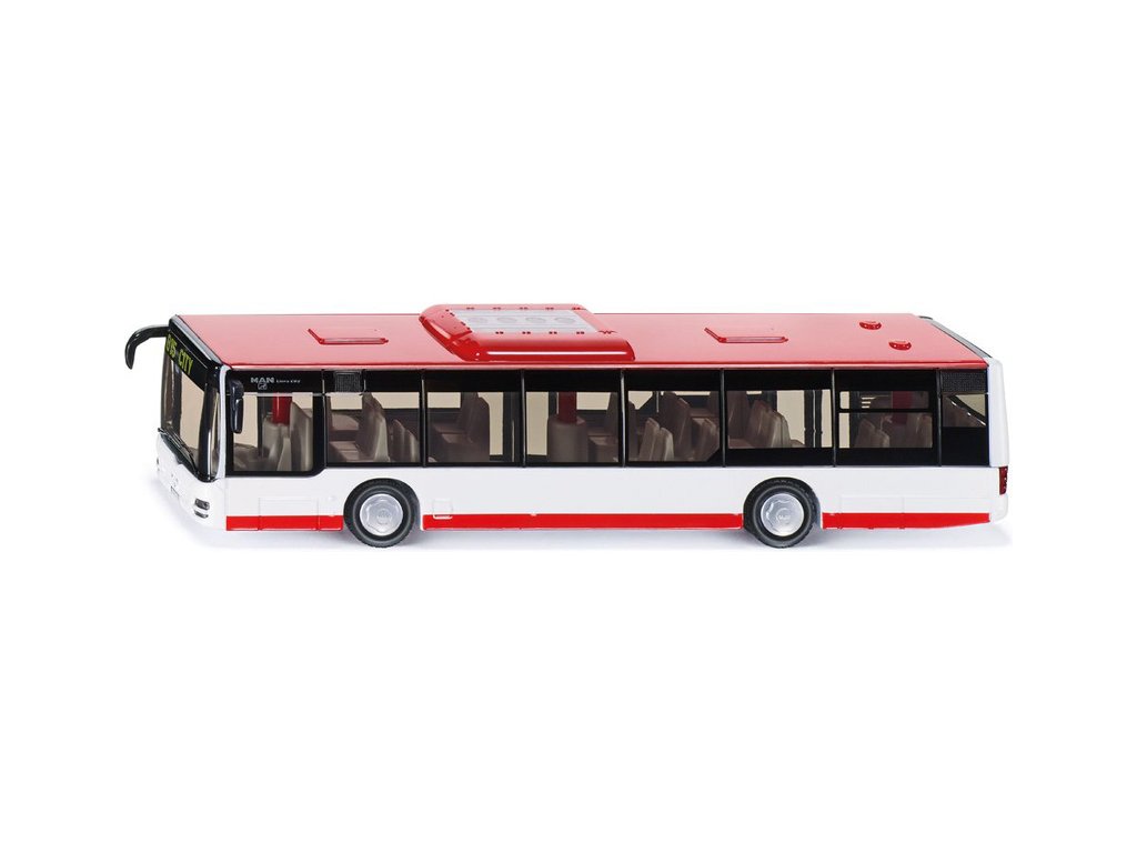 Kovový model autobusu MAN Lions City v měřítku 1:50 od značky Siku. Model má pogumované pneumatiky (dvojité na zadní nápravě), dvojí otevírací dveře na pravé straně, otevírací víko motoru a tónovaná okna. Vhodné pro hraní i sběratelství. Kvalitní zpracování z kovu a plastu.