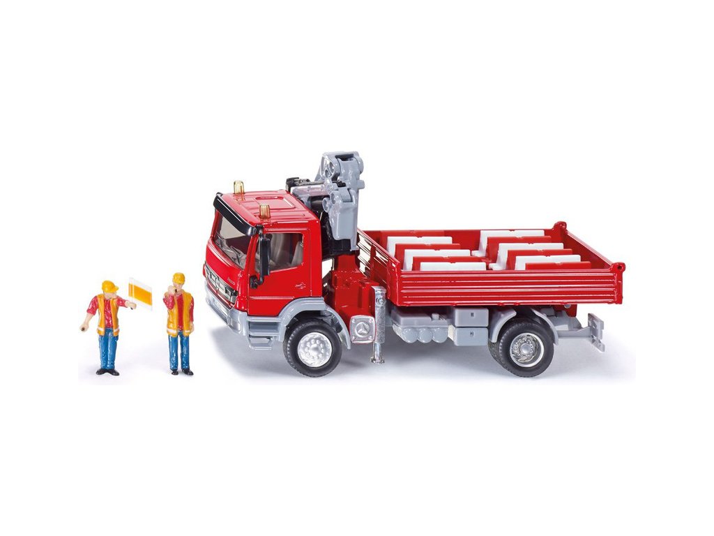 Kovový model auta Mercedes Atego s jeřábem v měřítku 1:50 od značky Siku. Model má otočné nakládací rameno s pohyblivými klouby a maketami pístů, výsuvné podpěry a sklopnou korbu. Včetně figurek dělníků a silničních bloků. Vhodné pro hraní i sběratelství. Kvalitní zpracování z kovu a plastu.