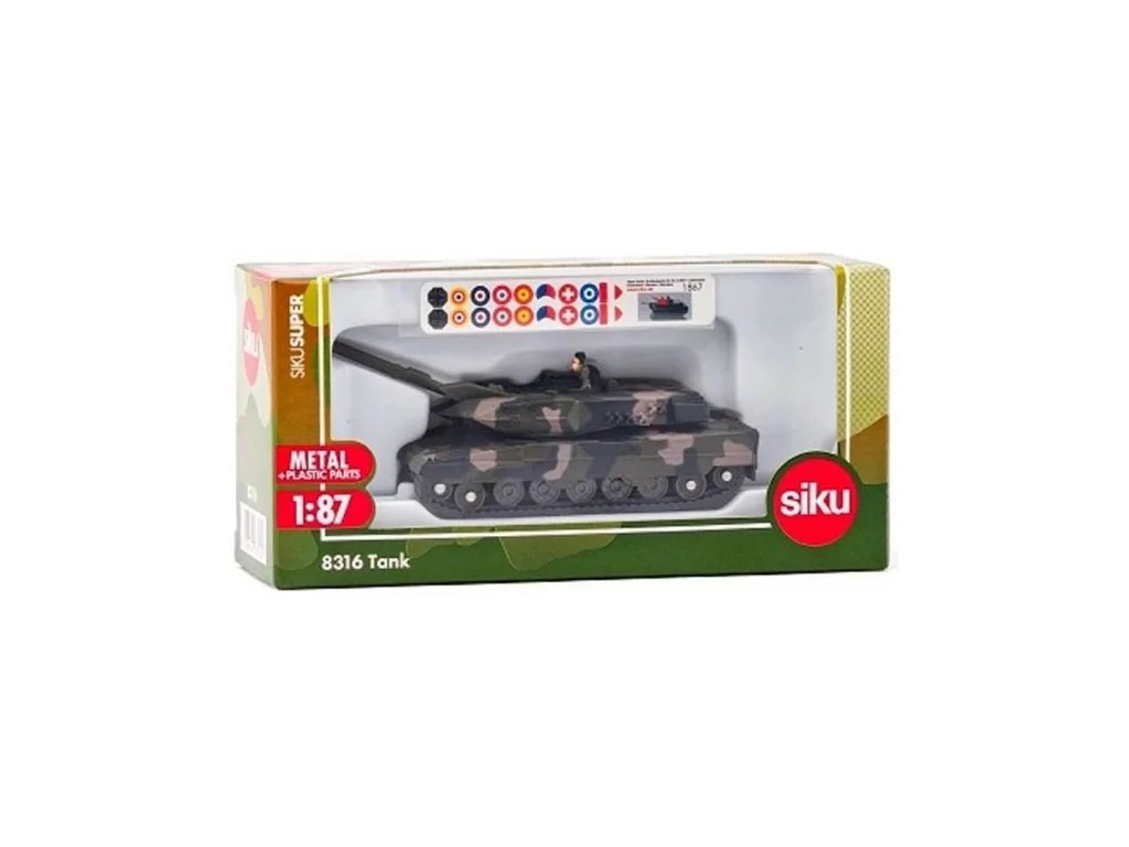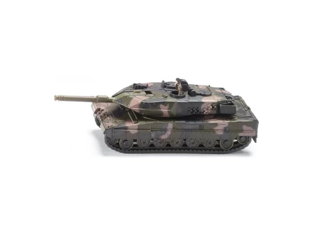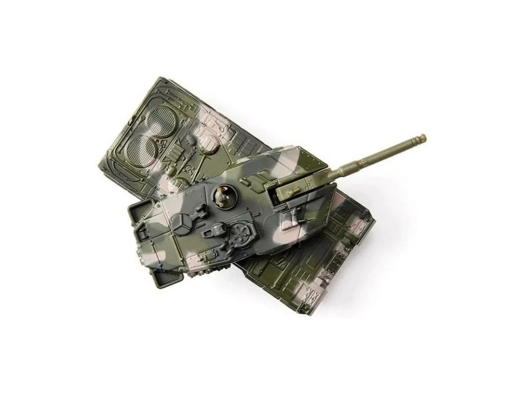 Kovový model tanku Leopard v měřítku 1:87. Bojový tank má pohyblivou dělovou věž a dělo, otáčející se pásy. Včetně figurky vojáka. Vhodné pro hraní i sběratelství. Kvalitní zpracování z kovu a plastu.