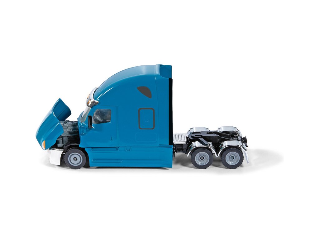 Kovový model nákladního auta Cascadia v měřítku 1:50. Má otevírací kapotu. Výrazný design laku v barvě Miami Blue s chromovými prvky. Vhodné pro hraní i sběratelství. Kvalitní zpracování z kovu a plastu.