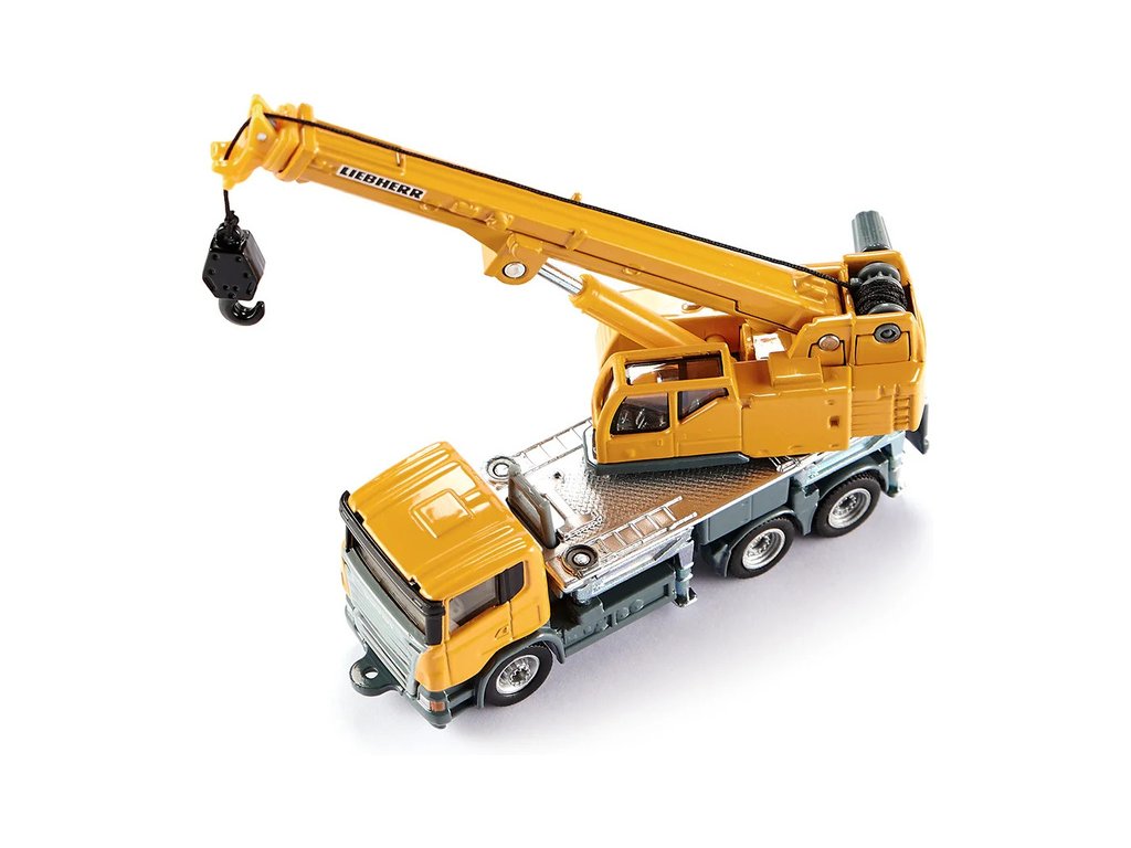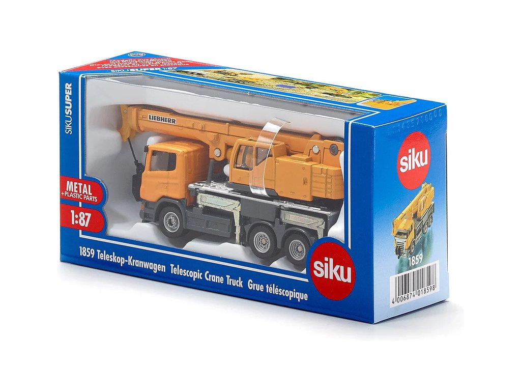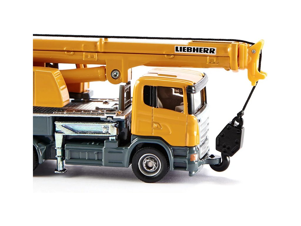 Kovový model autojeřábu Liebherr v měřítku 1:87 od značky Siku. Model obsahuje výsuvné teleskopické rameno s pohyblivou maketou pístu, otočnou (360°) nádstavbu s kabinou, hák s navíjením přes kolečko a výklopné podpěry. Vhodné pro hraní i sběratelství. Kvalitní zpracování z kovu a plastu.