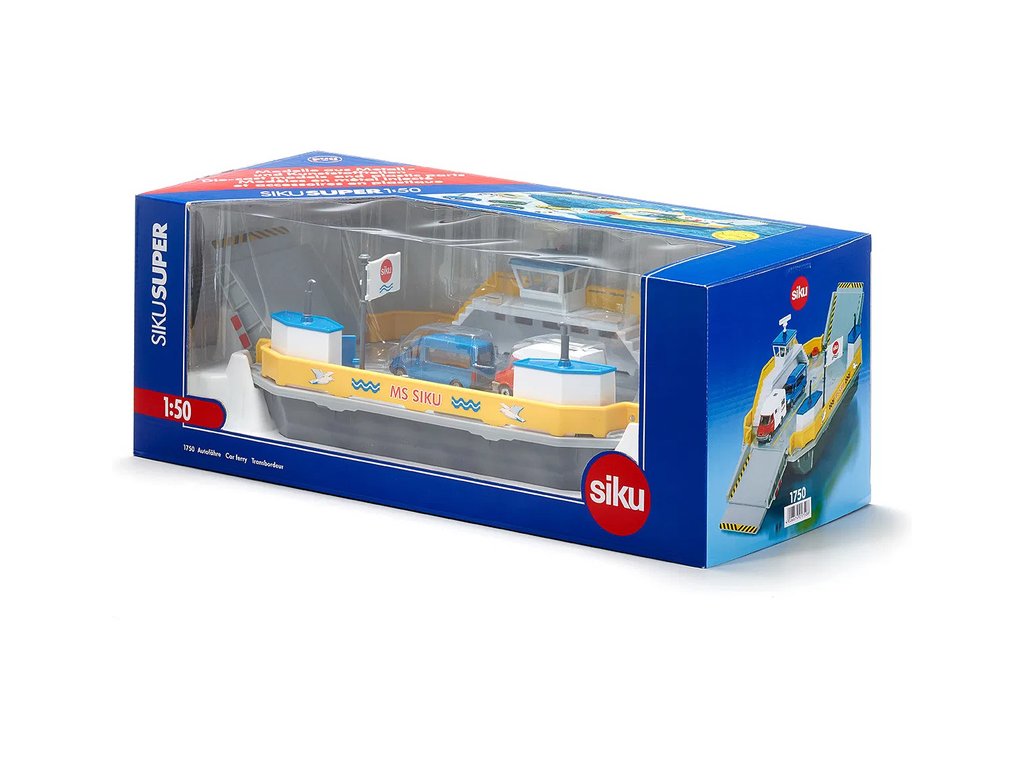 Kovový plovoucí model trajektu pro přepravu aut v měřítku 1:50 od značky Siku. Model obsahuje množství detailů včetně dvou sklopných ramp, otevíracích dveří do kabiny a dvou auta pro přepravu. Vhodné pro hraní i sběratelství. Kvalitní zpracování z kovu a plastu.