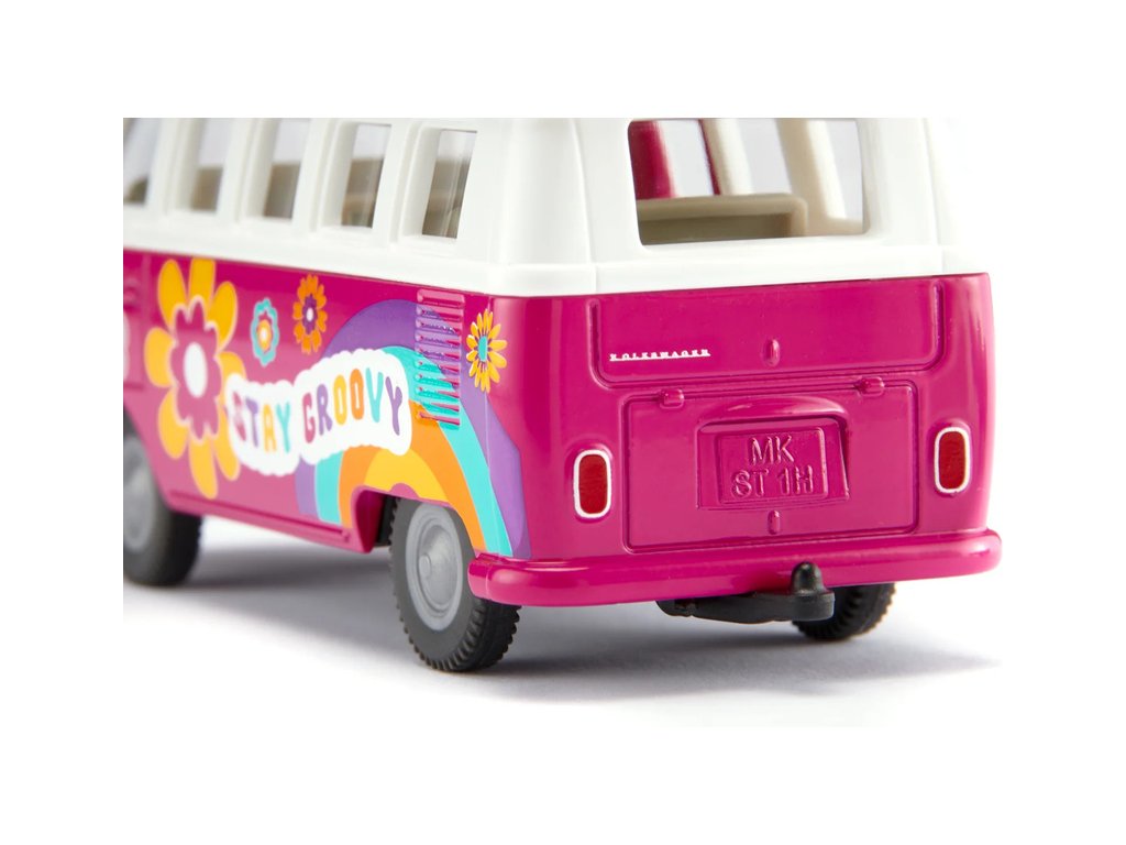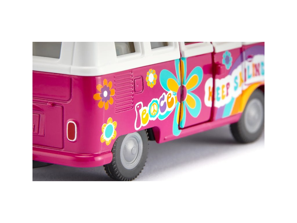 Kovový model minivanu Volkswagen T1 v provedení Samba v měřítku 1:50. Legendární model z 50. let, oblíbený v komunitě hippies, jako model s detailním zpracováním a otevíracími dveřmi na pravé straně. Vhodné pro hraní i sběratelství. Kvalitní zpracování z kovu a plastu.
