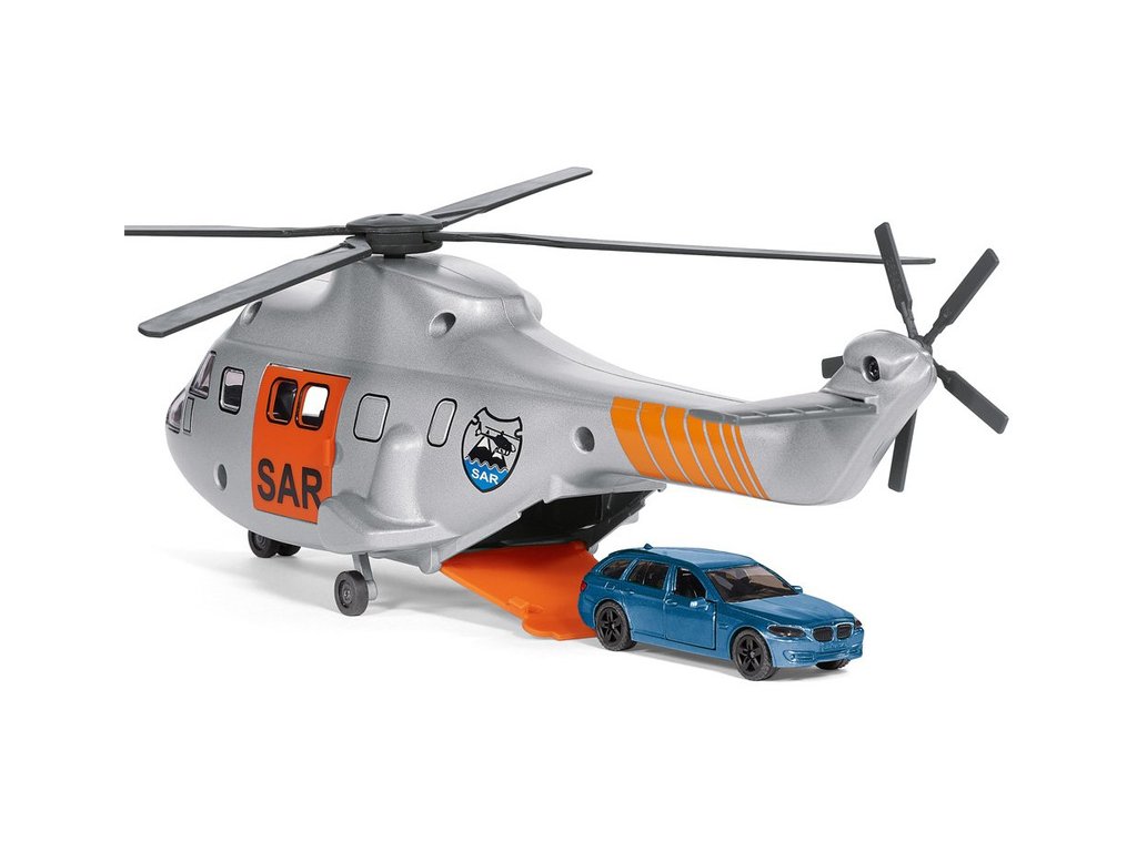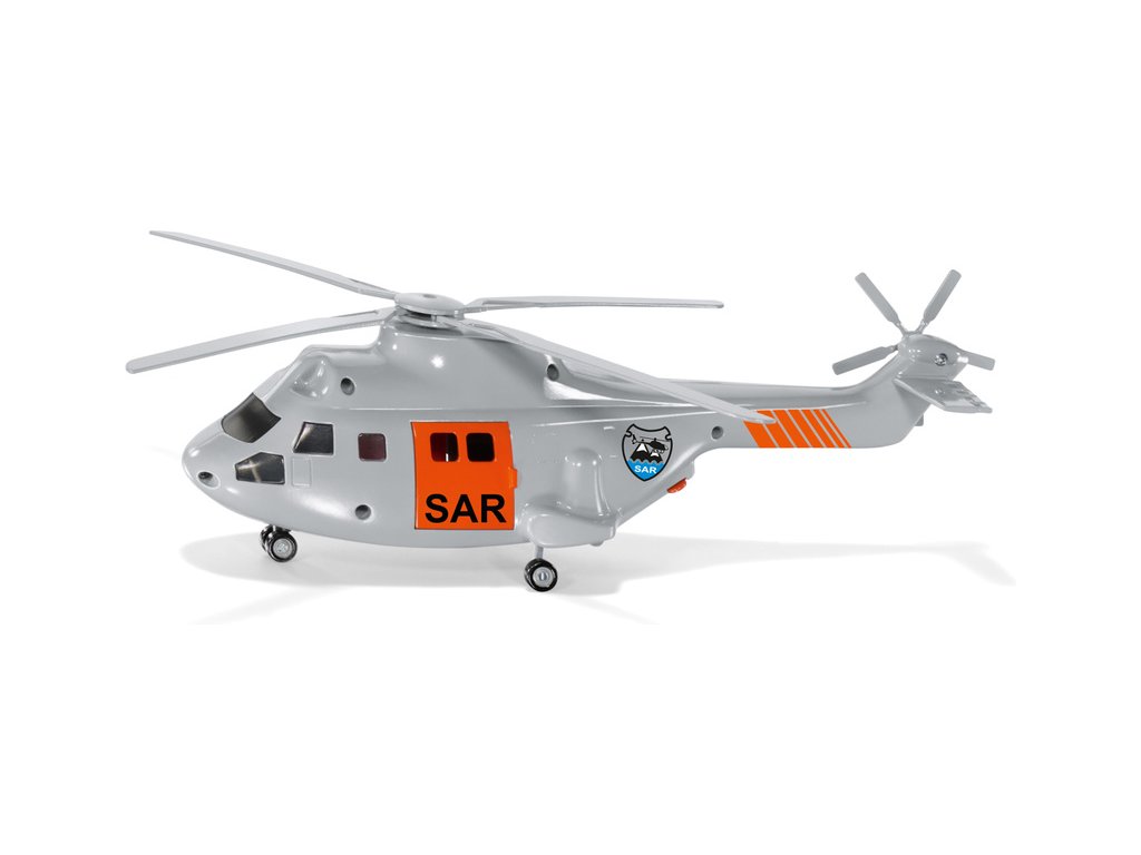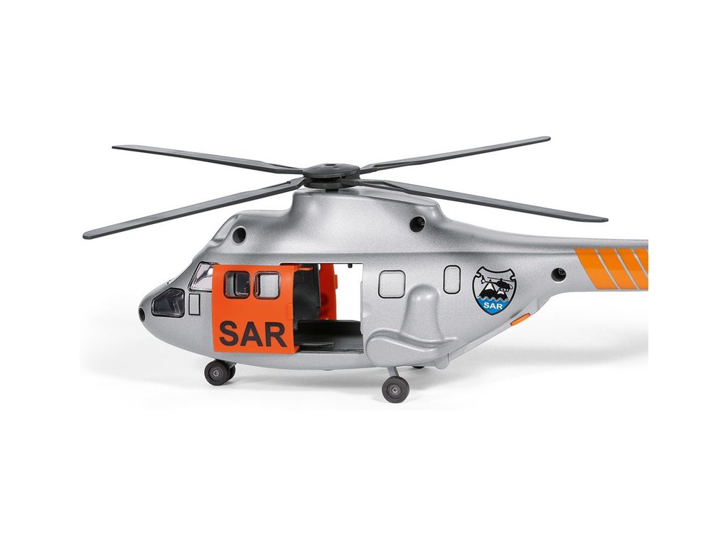Kovový model záchranného vrtulníku v měřítku 1:50. Má otáčecí vrtule, posuvné boční dveře a otevírací zadní rampu. Podvozek lze sklopit. V trupu je instalovaný natahovací naviják s lanem a očkem pro vyzdvižení raněného s nosítky. Vhodné pro hraní i sběratelství. Kvalitní zpracování z kovu a plastu.