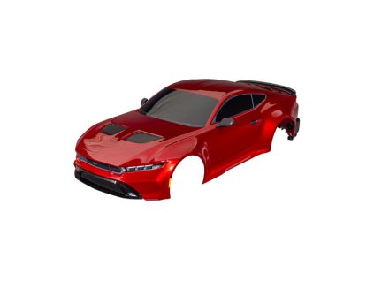 Náhradní díl pro RC modely aut Traxxas 4-Tec Drift Ford Mustang: karosérie červená hotová, obsahuje boční zrcátka, spoiler, mřížky, větrací otvory, bez klipů.