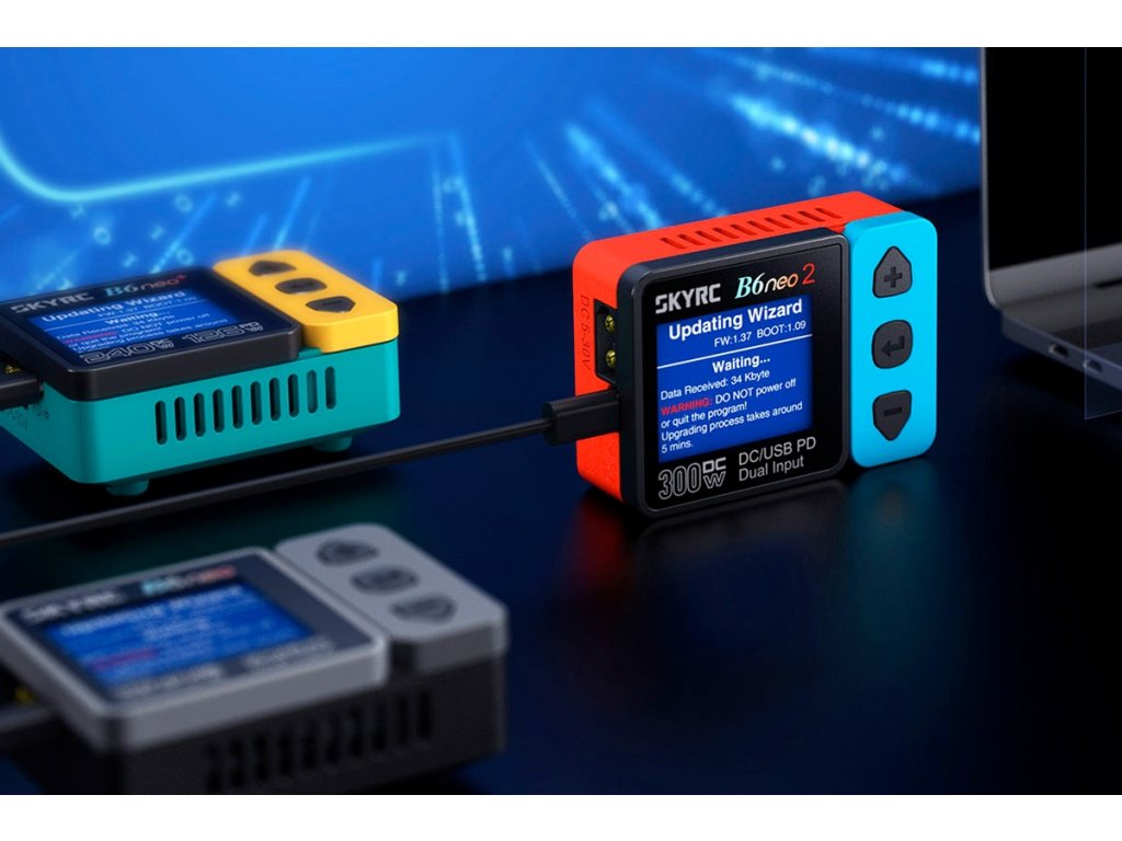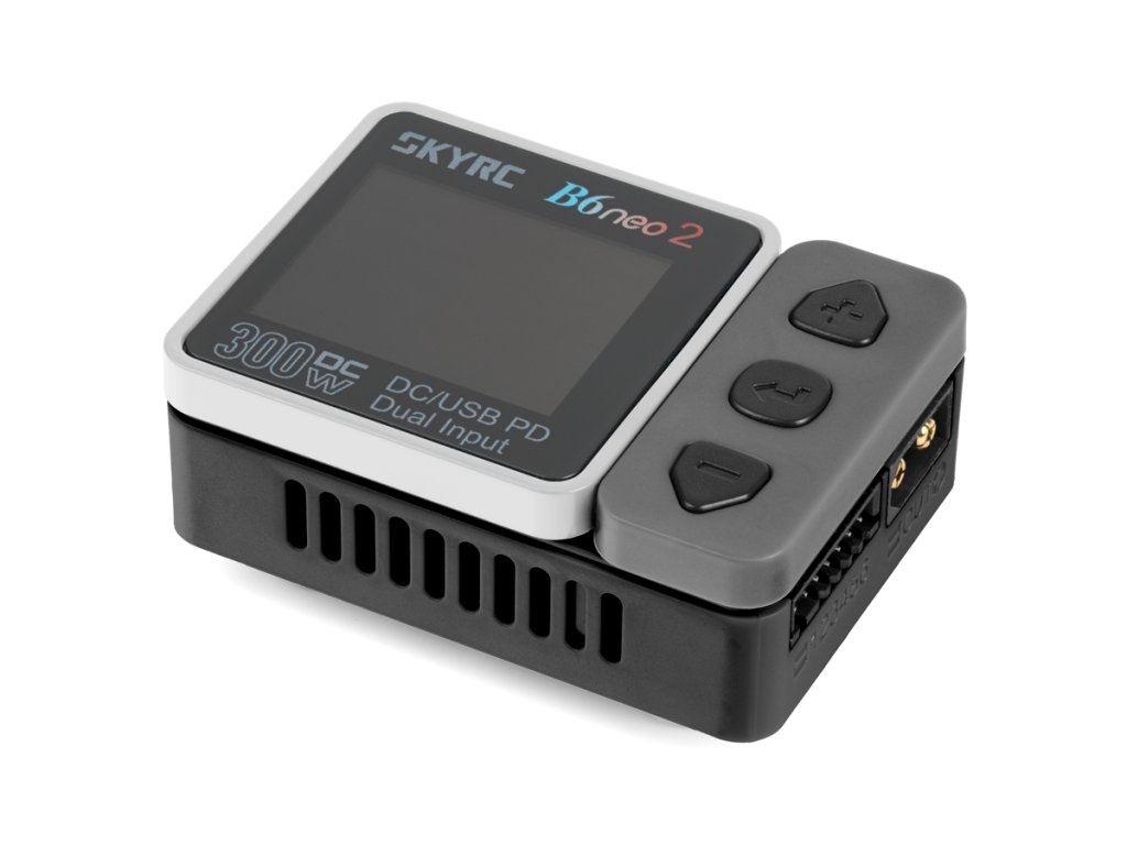 Miniaturní nabíječ SKY RC B6neo2 300W byl konstruován se snahou poskytnout vše potřebné pro nabíjení velkými proudy, s jednoduchou obsluhou, při velikosti „na půl dlaně“ nebo „do kapsičky u vesty“. B6neo2 umožňuje nabíjet a vybíjet běžné typy článků (NiCd, NiMH, Li-poly, Li-ion, Li-Fe, Li-HV, Pb), navíc je vybaven vestavěným šestikanálovým balancerem, který zajišťuje velmi bezpečné a komfortní nabíjení lithiových akumulátorů. Může také pracovat v režimu regulovaného napájecího zdroje s výstupním napětím nastavitelným v rozmezí 5-27 V a proudem 1-15 A.