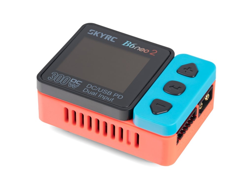 Miniaturní nabíječ SKY RC B6neo2 300W byl konstruován se snahou poskytnout vše potřebné pro nabíjení velkými proudy, s jednoduchou obsluhou, při velikosti „na půl dlaně“ nebo „do kapsičky u vesty“. B6neo2 umožňuje nabíjet a vybíjet běžné typy článků (NiCd, NiMH, Li-poly, Li-ion, Li-Fe, Li-HV, Pb), navíc je vybaven vestavěným šestikanálovým balancerem, který zajišťuje velmi bezpečné a komfortní nabíjení lithiových akumulátorů. Může také pracovat v režimu regulovaného napájecího zdroje s výstupním napětím nastavitelným v rozmezí 5-27 V a proudem 1-15 A.