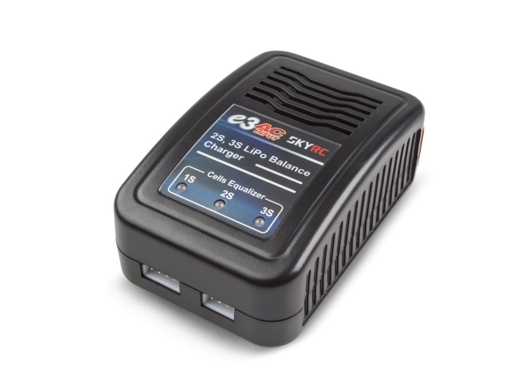 Nabíječ SKY RC e3 s vestavěným balancerem je velmi jednoduchý "krabičkový" nabíječ pro rekreační jezdce a letce se síťovým napájením pro nabíjení Li-poly akumulátorů. Je ideálním doplňkem "setových" stavebnic umožňující jednoduché nabíjení doma nebo výborným společníkem na cesty, kdy s sebou nechcete "tahat" velký, těžký a drahý nabíječ. Nabíjený akumulátor se připojuje k vestavěnému balanceru prostřednictvím servisního konektoru; nabíječ je opatřen dvěma zásuvkami (2s, 3s) pro konektory systému JST-XH. V jednu chvíli je možno nabíjet vždy jen jednu sadu - buď dvoučlánkovou, nebo tříčlánkovou.