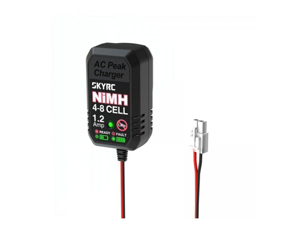 Nabíječ Sky RC eN18 je velmi jednoduchý „krabičkový" nabíječ se síťovým napájením pro rekreační jezdce a letce pro nabíjení 4-8čl. NiMH akumulátorů. Je ideálním doplňkem „setových" stavebnic (především aut, lodí, tanků, stavebních strojů...) umožňující jednoduché nabíjení doma nebo je výborným společníkem na cesty, kdy s sebou nechcete „tahat" velký, těžký a drahý nabíječ. Nabíjecí proud 1,2 A spolehlivě vyhoví pro většinu NiMH akumulátorů používaných v rekreačních modelech.
