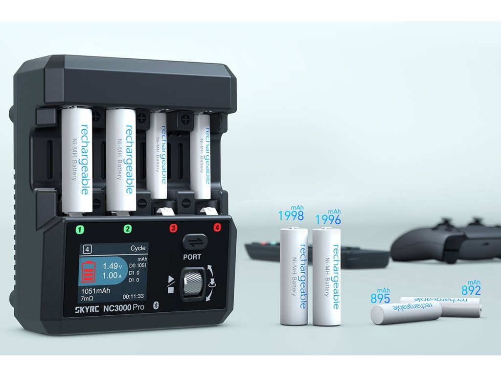 NC3000 PRO umožňuje současně – a přitom nezávisle - nabíjet nebo vybíjet až čtyři různé tužkové nebo mikrotužkové akumulátory. Pokud nabíjíte čtyři stejné akumulátory, stačí parametry nastavit pro jeden kanál a potom jedním stiskem tlačítka zvolit simultánní nabíjení se stejnými parametry ve všech kanálech. Parametry probíhajícího procesu (nabíjecí/vybíjecí proud, nabitý/vybitý náboj, napětí akumulátoru, vnitřní odpor) jsou průběžně zobrazovány pro všechny kanály na LCD.