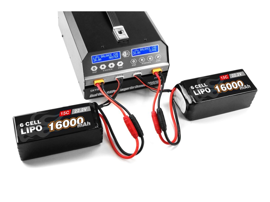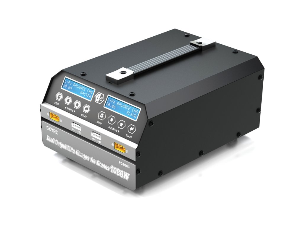 Vysokovýkonný dvoukanálový nabíječ SKY RC PC1080 s vestavěnými balancery s výkonem až 540 W na kanál pro šestičlánkové LiPo a LiHV s napájením ze sítě 100-240 V/50-60 Hz. Nabíječ je speciálně konstruován pro nabíjení 6S akumulátorů velkých kapacit, jaké se používají ve větších profesionálních multikoptérách a podobných zařízeních (POZOR - pouze 6S akumulátorů). Umožňuje synchronní provoz obou kanálů pro nabíjení akumulátorů stejného typu – a nejen to – pomocí datového kabelu je možno synchronizovat několik nabíječů PC1080, které se všechny nastaví a spustí z jediného řídícího kanálu MASTER. Nabíječ je konstruován s ohledem na dlouhodobý provoz při vysokém zatížení a v nepříznivém prostředí.