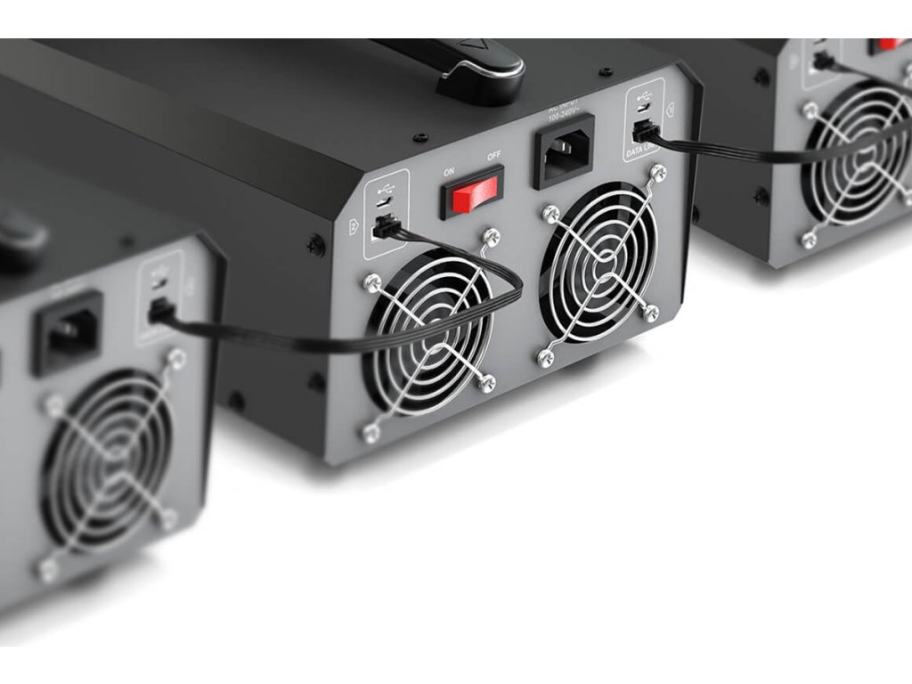 - Vestavěné ventilátory pro nucené chlazení s protiprachovým filtrem na vstupu chladícího vzduchu