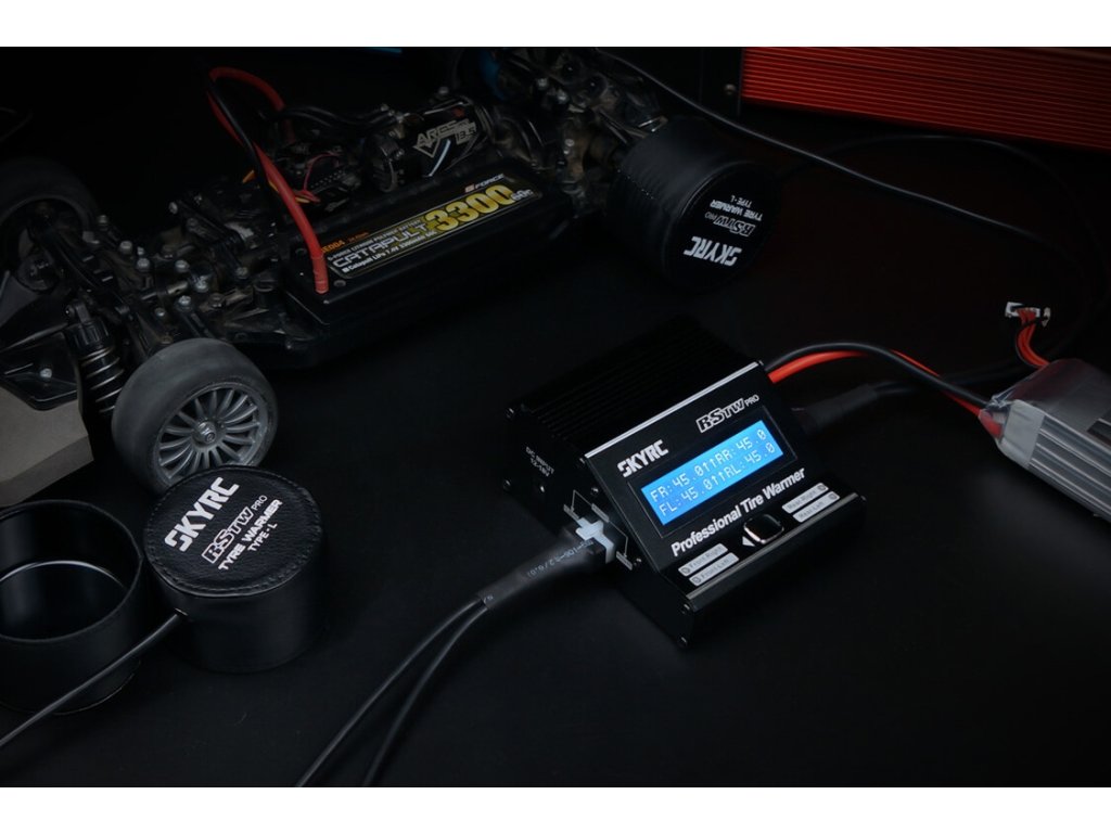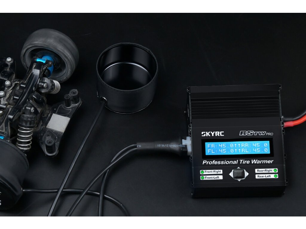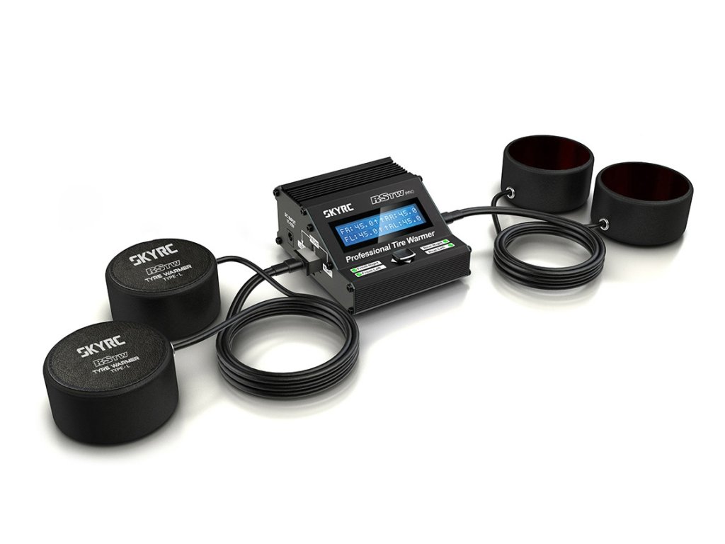 Kompaktní inteligentní předehřívač pneumatik pro RC silniční auta 1:10 vám umožní – tak jako jezdcům „velké“ Formule 1 - vyrazit do závodu s pneumatikami zahřátými na optimální teplotu hned od startu! Auto postavíte na stojánek, na kola nasadíte předehřívací návleky a spustíte zahřívací program – a je to! Samozřejmě, se vším si můžete vyhrát ještě více, předehřívat ve dvou nebo třech stupních, nanášet různá aditiva...to vše vám předehřívač bez problému umožní.