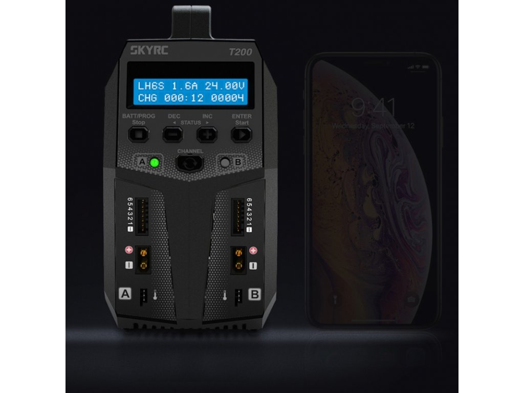 T200 umožňuje nabíjet a vybíjet běžné typy článků (NiCd, NiMH, Li-poly, Li-ion, Li-Fe, Li-HV, Pb), navíc jsou oba kanály vybaveny vestavěnými šestikanálovými balancery, které zajišťují velmi bezpečné a komfortní nabíjení lithiových akumulátorů.