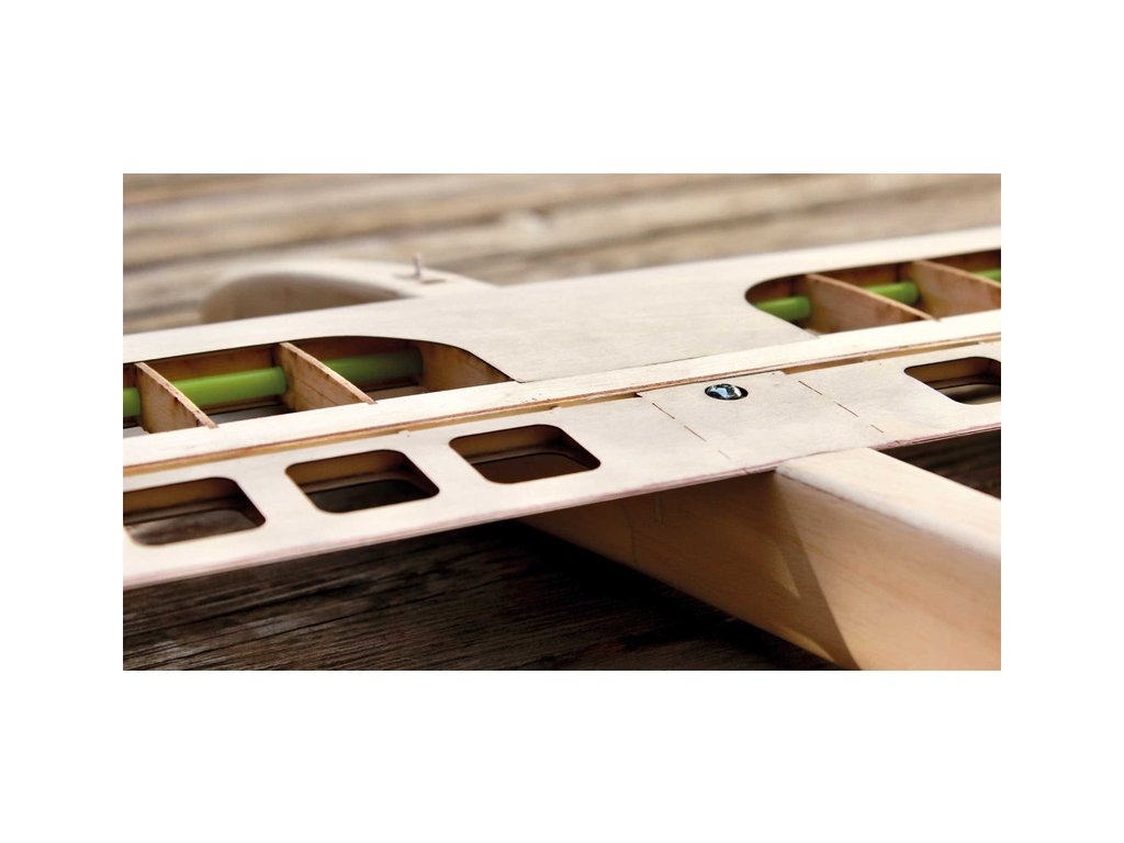 Rozsáhlá stavebnice s mnoha díly je vyrobena z pečlivě vybraného dřeva a obsahuje všechny potřebné dřevěné díly i příslušenství, jako jsou spojky do křídel, laminátové páky kormidel, panty atd. Díky mnoha konstrukčním pomůckám, jako jsou pomocné podpěry pro přepážky trupu a na žebrech křídla, lze montáž provést poměrně rychle, výhodou jsou zkušenosti se stavbou dřevěných stavebnic. Součástí dodávky je také obsáhlý ilustrovaný stavební návod a stavební plán 1:1.