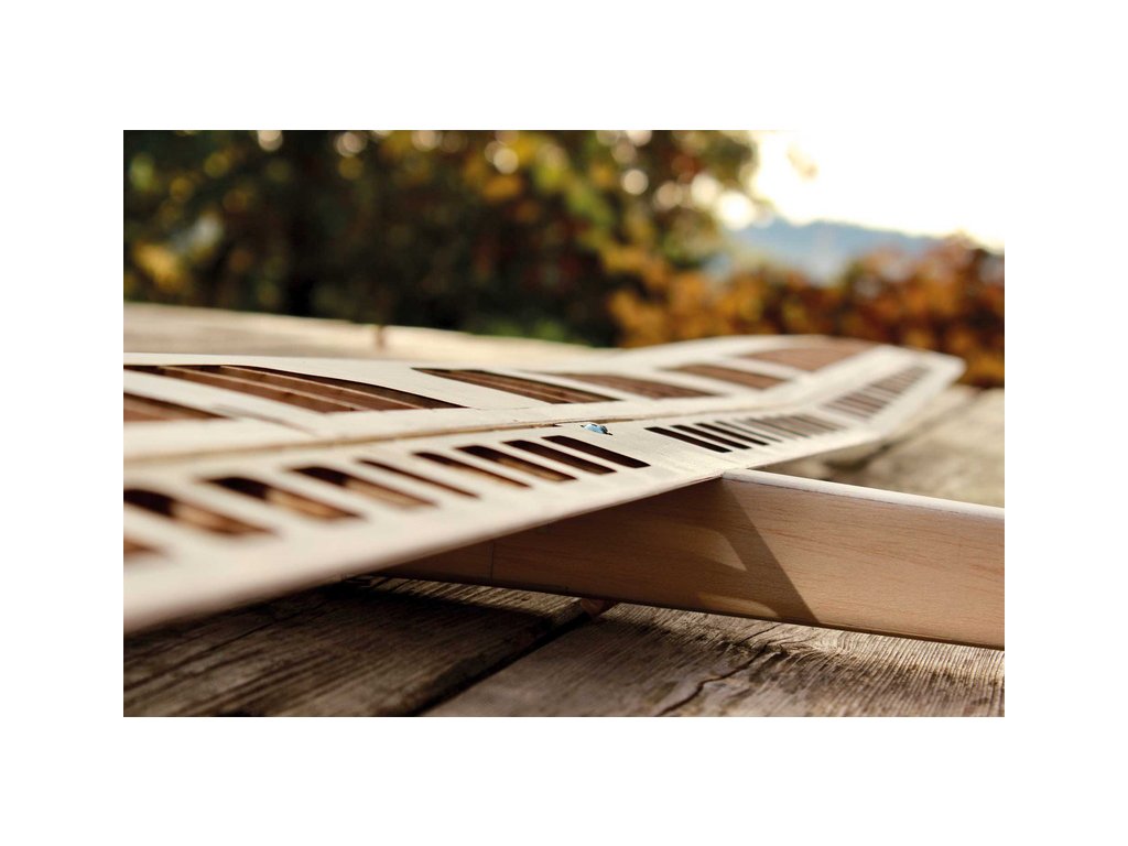 Jedná se o klasickou celodřevěnou stavebnici. Pro sestavení modelu potřebujete vhodná lepidla, základní modelářské nářadí a potahovou fólii. K potažení modelu doporučujeme použít nažehlovací fólii. V balení není elektronika, proto potřebujete dokoupit RC soupravu, baterii, serva a nabíječ.