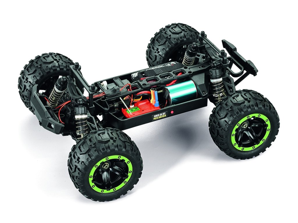 Model Monster trucku v měřítku 1:16 s pohonem všech kol 4x4, poháněný střídavým motorem vč. RC volantové soupravy 2,4 GHz a pohonného akumulátoru. Voděodolný regulátor a přijímač.