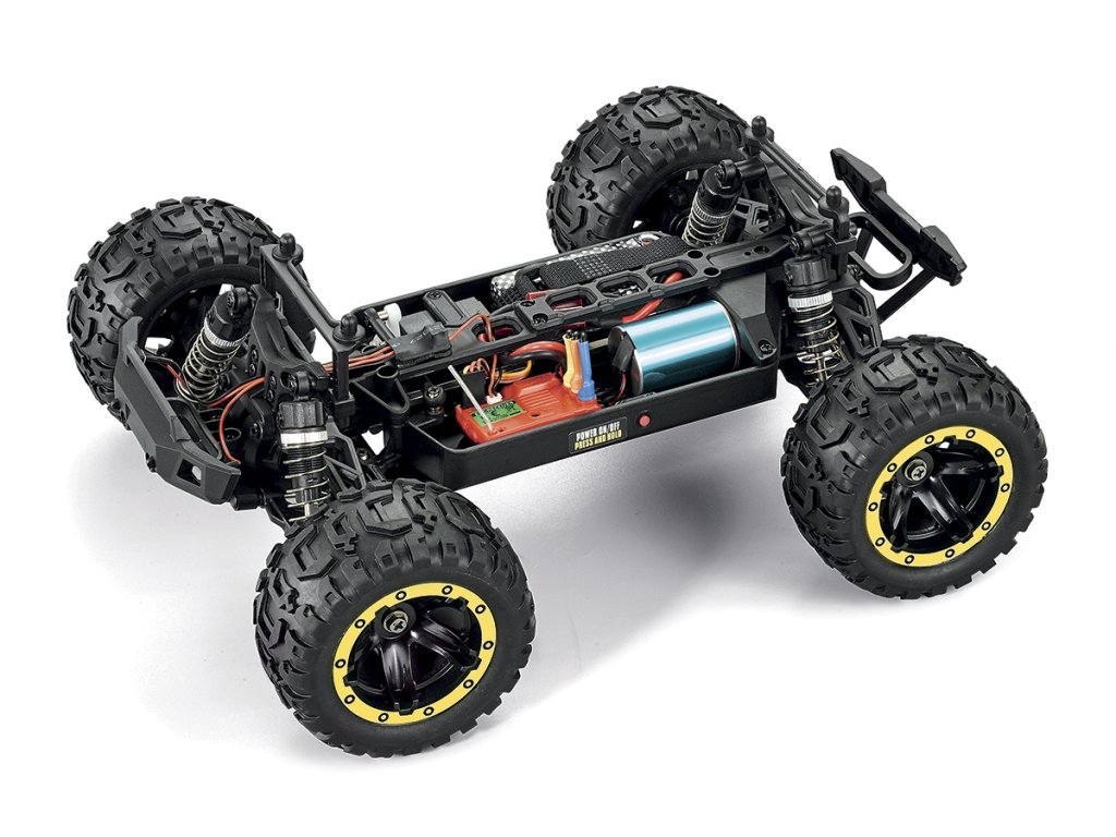 Model Monster trucku v měřítku 1:16 s pohonem všech kol 4x4, poháněný střídavým motorem vč. RC volantové soupravy 2,4 GHz a pohonného akumulátoru. Voděodolný regulátor a přijímač.