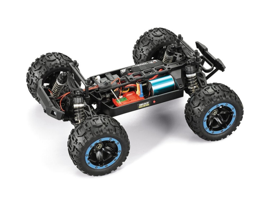 Šestnáctinový RC monster truck je sice malý rozměry, ale velký možnostmi. Tento vůz s pohonem všech 4 kol je připraven čelit skokům a nárazům, a nezaostává ani při nejrůznější akrobacii. Díky 4x4 pohonu, rovnoběžníkovému zavěšení a stavitelným tlumičům zdolá nástrahy každého terénu, a díky krytým převodům a voděodolné elektronice se nezalekne ani kaluží, bláta nebo prachu. Nejen že v modročerném kabátku vypadá úžasně, ale doplněn o LED světlomety, je Slyder připraven i k jízdě za zhoršených světelných podmínek nebo v noci. LED světla jsou přibalena k modelu, a podle preferencí jezdce je lze umístit kamkoliv, a poté pouze připojit konektor k akumulátoru.