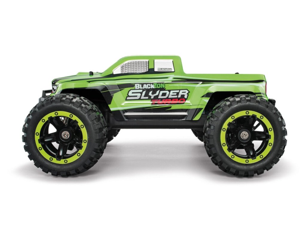 Šestnáctinový RC monster truck je sice malý rozměry, ale velký možnostmi. Tento vůz s pohonem všech 4 kol je připraven čelit skokům a nárazům, a nezaostává ani při nejrůznější akrobacii. Díky 4x4 pohonu, rovnoběžníkovému zavěšení a stavitelným tlumičům zdolá nástrahy každého terénu, a díky krytým převodům a voděodolné elektronice se nezalekne ani kaluží, bláta nebo prachu. Nejen že v zelenočerném kabátku vypadá úžasně, ale doplněn o LED světlomety, je Slyder připraven i k jízdě za zhoršených světelných podmínek nebo v noci. LED světla jsou přibalena k modelu, a podle preferencí jezdce je lze umístit kamkoliv, a poté pouze připojit konektor k akumulátoru.