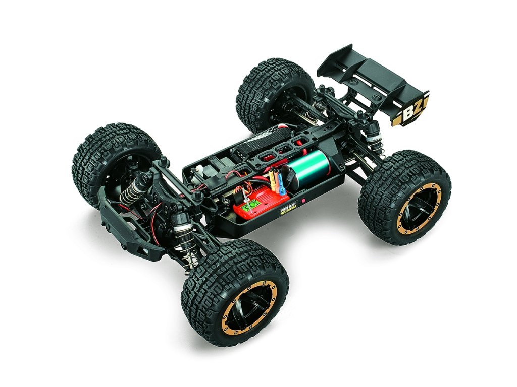 Model Truggy v měřítku 1:16 s pohonem všech kol 4x4, poháněný střídavým motorem vč. RC volantové soupravy 2,4 GHz a pohonného akumulátoru. Voděodolný regulátor a přijímač.