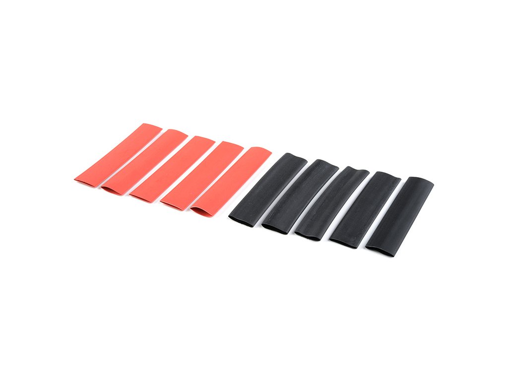 Smršťovací bužírka na kabely a konektory 9,5mm červená+ černá. Smrští se až o 50%, délka 68 mm, 5 + 5 ks v balení (červená + černá).