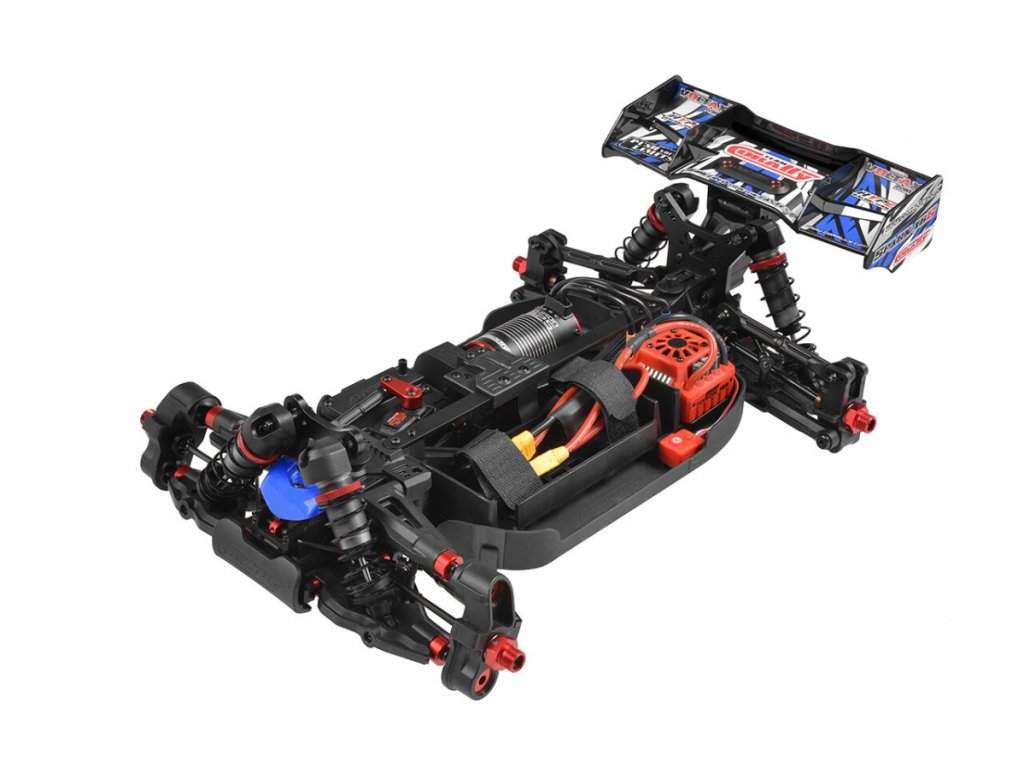 Je vybavena oddělenými, těsnícími elektronickými krabičkami s držákem odpovídače, XL nastavitelným držákem baterie kompatibilním s běžnými LiPo bateriemi a kompletní sadou utěsněných kuličkových ložisek letecké kvality.