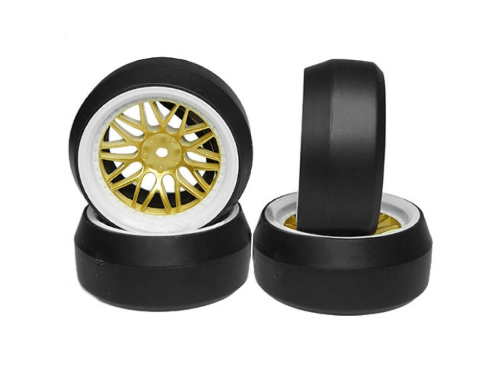 Spec D LS Wheel Offset +6 White Gold w/Tire 4ks pro 1/10 Drift