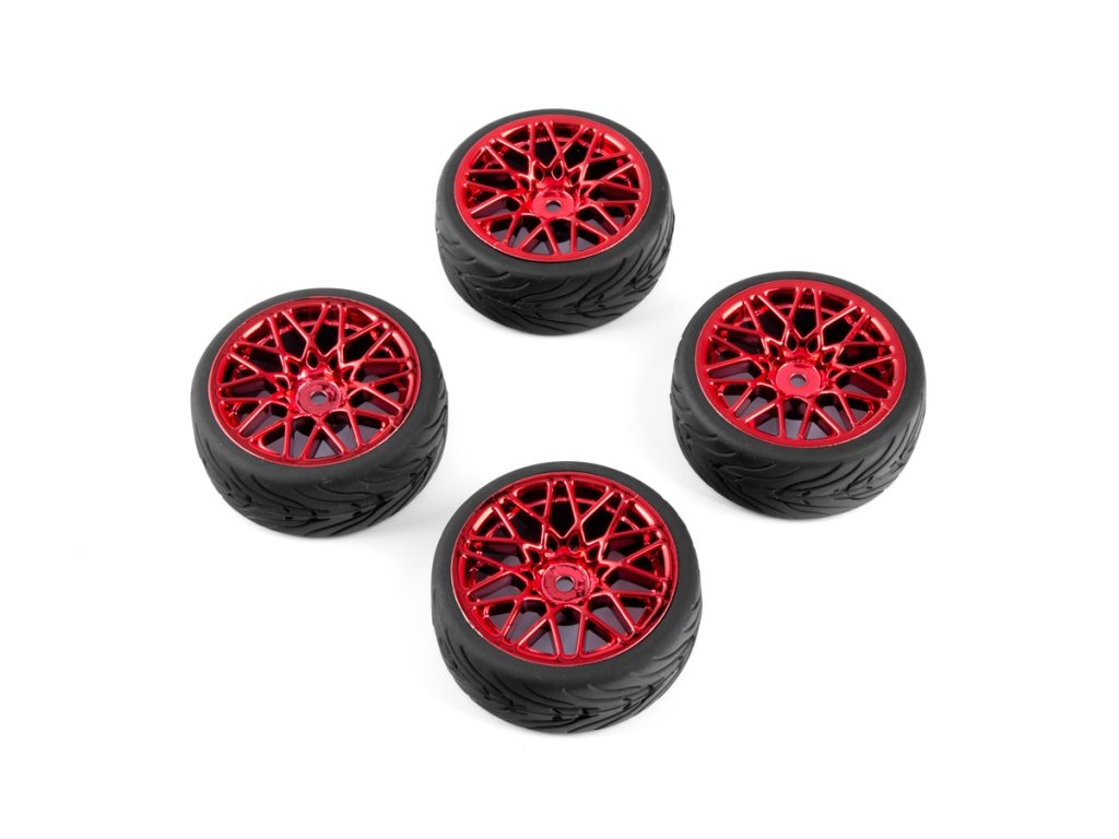 Spec T LS Wheel Offset 3 Red w/Tire 4ks pro 1/10 Silniční